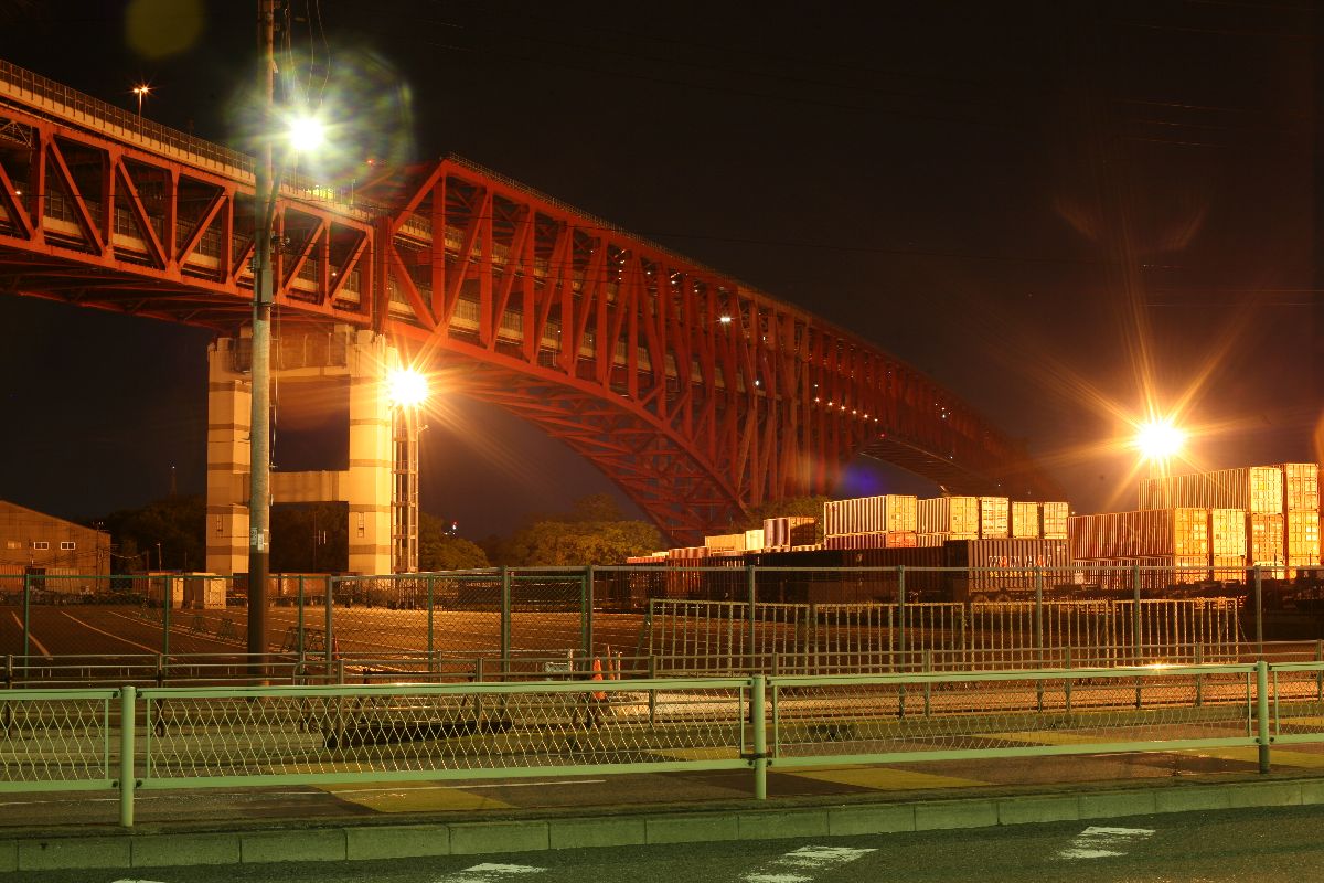 真正面から見るとこう。 また、これを見ると、橋脚が更新されているのがわかる。歩道橋架設と同時期だろうか。 この珊瑚橋は、風景印にもなっている。ほどよく古びた形、好ましい小ささが、桜を愛でる北上展勝地と馴染んでいるのだろう。サイト『風景院gallery』に掲載がある。 また、この珊瑚橋は、初期の道路橋のサンプルのひとつとして、『本邦道路橋集覧』第三輯に概要と図面が掲載されている。『歴史的鋼橋集覧』の図面もこれを転載したものだ。 PR この橋は京都府南丹市(旧八木町)にある大堰橋(おおいばし)。八木大橋、と書かれる場合もあるが、ここでは親柱に従い大堰橋とする。歴史的鋼橋集覧のページはこちら。ただし、「カンチレバートラス+RC単純桁」とあるが、図面はそれとは異なり10径間になっている。その図面は本邦道路橋集覧内の第4輯・突桁式鋼構橋と同じものだ。「突桁式」がカンチレバー式(ゲルバー式)、「構橋」がトラス橋を表す。現在の図面は南丹市の「広報なんたん」に通行規制のお知らせが出たときに掲載されたものがある。この図面では鈑桁は単純桁が3連、連続しているように見える。鈑桁が架け替えられたのは1996年だ。(「JR八木駅かいわい」asahi.com) この大堰橋がかかるのは桂川。この下流は保津峡を刻み、京都の西側を南下し、大山崎付近で宇治川、木津川と合流し、淀川となって大阪湾に流れ出る。 上流(北)から見る。3径間のカンチレバートラスと3径間鈑桁の組み合わせである。 手前に車道橋から独立した歩道橋がある。また、側面に電飾が取り付けられている。 西側(八木駅側、トラス側)の橋門はこう。 歩道を増設したときに、橋脚は更新されているようだ。 残された親柱にはこうある。 銘板。塗装で塗りつぶされて読めないが、反対側の銘板から推測して だろう。カゲロウがくっついている。 そのまま少し進む。 なにか、いまいち重厚な気がしない。リベット留めなのに、最近作られた橋であるかのような、のっぺりした印象がある。 そのまま東側のトラスの終端部。 歩道が手前に向かって拡幅されている。また、親柱は見あたらない。まあ、この後も鈑桁が続くので、ここにはないのかもしれない。 銘板。 西側よりははっきりと読める。左上に見えているものは電飾。 ちょっと視点を変えて。 そのまま東側へ。 鈑桁は3車線分あり、端部はこのようになっている。そして、親柱がある。 西側の親柱と同じ型式のものだ。当初よりあったもの(または架け替え時に存在していたもの)を、橋梁の拡幅とともに移設したのだろう。 鈑桁を見る。 図面を見ると3連の桁に見えるが、写真を拡大してみれば連続桁である。 そして、橋脚に注目。冒頭の、左右全体写真と合わせてごらんいただきたいが、開通時の昭和10年のものではない。 カンチレバートラス部分は歩道が付加された分、橋脚が幅広くなっている。鈑桁部分は桁が広くなったのだから、もちろんその幅の分、橋脚が幅広くなっている。鈑桁が架け替えられた1996年に、同時に更新されたのだろうか。 この大堰橋の、カンチレバートラス部分は桂川の本流をまたぎ、鈑桁の一部も本流をまたいでいる。しかし、鈑桁部分は本来、かつて10径間だったこと=橋脚が多数あったことからわかるとおり、横溢部だった。 1974年度の航空写真(ckk-74-14_c9a_6)を見る。 現在はこんなだ。比較してみてほしい。 先に「のっぺりした印象」と書いたが、その理由は、部材が修復されているためだ。たとえばこうなっている。 道路越しの向こう側のトラスの、右端の斜材が修復されたものだ。 原型はこう。 山形鋼(L字型)をリベット留めし、その間にレーシングブレースが挟まれている。 それに対して、修復済みはこう。 山形構の下にもう1枚挟まっているように見える。また、側面も滑らかだ。 格点部分にも、修復した部分とそうでない部分の差は明らかだ。 . カンチレバートラス橋としての、吊桁と定着桁との結合部分はどうなっているだろうか。実は、よくわからない。冒頭の写真でいえば、三角形の頂点から数えて2格間左側の上弦と下弦にピンがあるが、この場所にピンがあるのにどうやって吊桁と接合しているのかが見えてこない。吊桁は定着桁と剛結合しているようにも見える。 上のピン。 下のピン。 関西本線木津駅のすぐ北、木津川を国道24号が渡る泉大橋は、カンチレバートラスである。1950年(昭和25年)製の桁がかかるが、なぜか歴史的鋼橋集覧にはない。 カンチレバートラスらしいリズミカルな9連の橋だが、右岸(北側)上流側(東側)から撮影している写真では、奥の画面左の南側2連が樹木に隠れて見えない。 この泉大橋はかっこいい。力強く見える。その理由は、夥しいリベットと、カンチレバーらしい吊り掛け部の構造にあるだろう。こうだ。 カンチレバーたる所以の吊り桁は、下記の黄色く記した部分である。なにもしていない部分は固定桁である。赤くした部分は、固定桁から吊り桁を摑んでいる部材であり、固