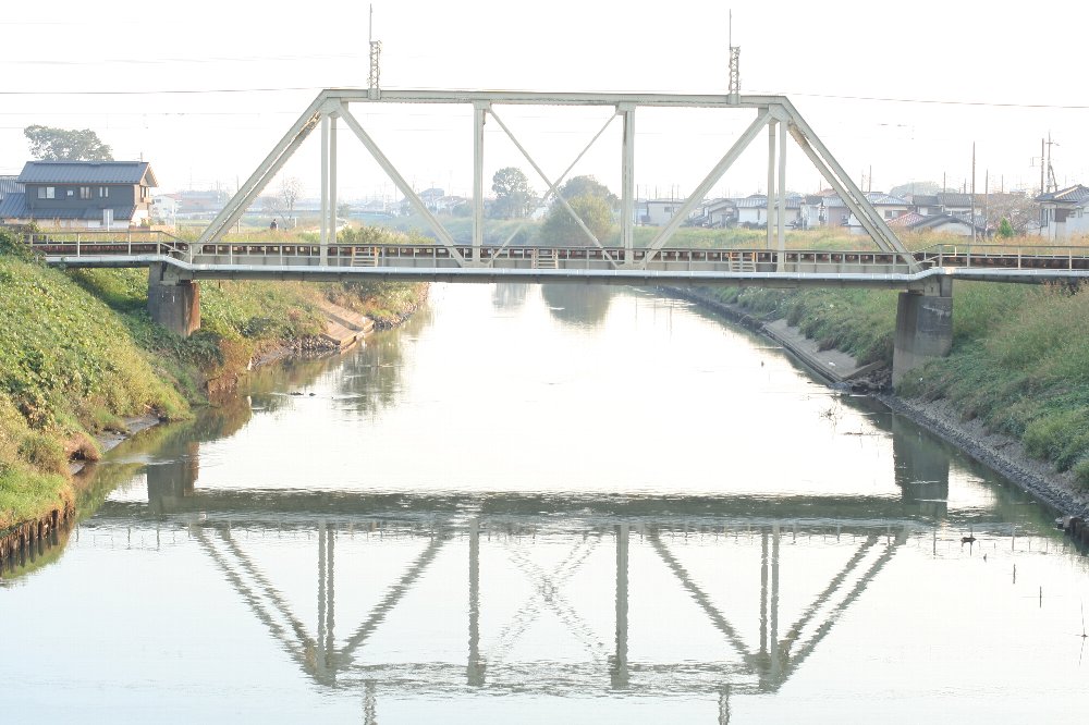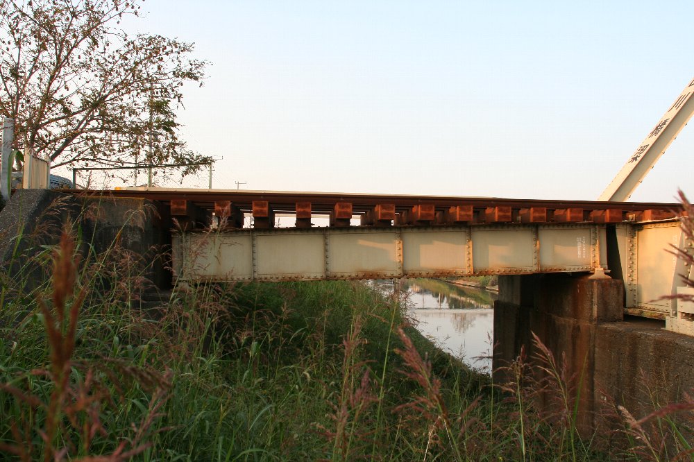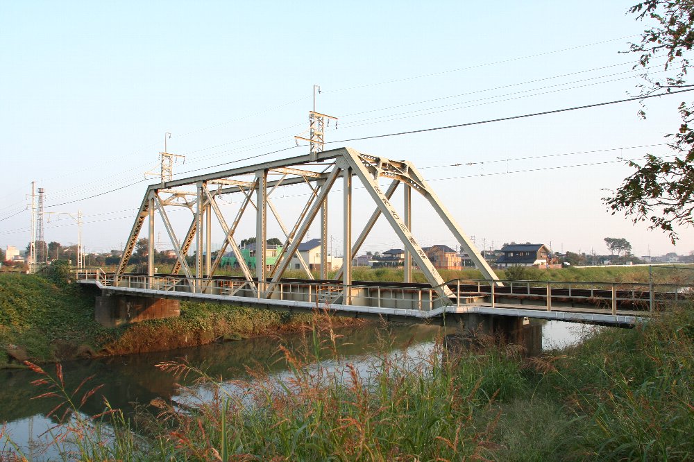 × [PR]上記の広告は3ヶ月以上新規記事投稿のないブログに表示されています。新しい記事を書く事で広告が消えます。 東武野田線の庄内古川橋梁である。 100ftでわたれてしまう庄内古川とは、東京湾に注ぐ中川そのものである。 中川を北に遡るとしよう。 武蔵野線と交差するあたりでは水のある幅が80mほどある中川は、 すぐに西に元荒川を分け、新方川を分け、大落古利根川を分ける。 すると、中川はこれくらいに細くなる。 1929年横河橋梁製の、当年80歳の橋梁である。 昭和五年