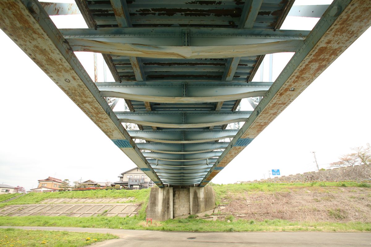 英国系100フィートポニーワーレントラスの横桁考の整理ページ == いったん、東側へ。 さて、少し戻る。 この伊達橋は、かつては信達軌道が通っていた橋である。興味を引かれた方は下記を是非ご覧いただきたいのだが、とくに『日本の廃道』には、この伊達橋に軌道が通っていたときの写真もふんだんに掲載されている。ぜひぜひ。 ・『日本の廃道』47号「旧橋紀行 伊達橋」(TUKA氏) ・wikipedia 伊達橋 ・wikipedia 福島交通飯坂東線 PR |