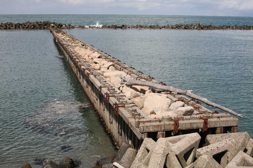 × [PR]上記の広告は3ヶ月以上新規記事投稿のないブログに表示されています。新しい記事を書く事で広告が消えます。 これを「突堤(とってい)」と言っていた。 これが、数百メートルおきに並んでいた。 既に相当傷んでいるが、その左に、海中に没した古い突堤が見える。 昭和50年の航空写真にも、それが見えている。 なお、グーグルマップやヤフー地図の衛星画像ではよく見えない。 この突堤は、なんのためのものだったのだろう。 子供の頃から不思議だった。 前述の航空写真を見ると、沖合のテトラポッドに行き着くためのものに見える。 構造は、土管を縦に海底に突き刺して並べ、 海面上の土管の頭の両側に直方体の鉄筋コンクリの塊を平行に並べて締め付けている。 それを2組平行に並べ、内側に岩石を投入してある。 直方体の上を歩いてもいいし、岩石の上を歩いてもいい。 岩石の間には小さなカニがいて、よく、棒で手前に掻き出してつかまえたものだ。 その土管の内側は砂が詰まっていて、さらに海水もたまっている。 釣り人たちは、その中に釣った魚を放したり、カニや貝を入れたりする。 アクアリウムをイメージしてたりして。 当然、すぐに暑くなり、すぐに魚は死んだだろう。 でも、今回ここをのぞいたら、フナムシが動いていた。 自在に出入りしているのだろう。 PR |