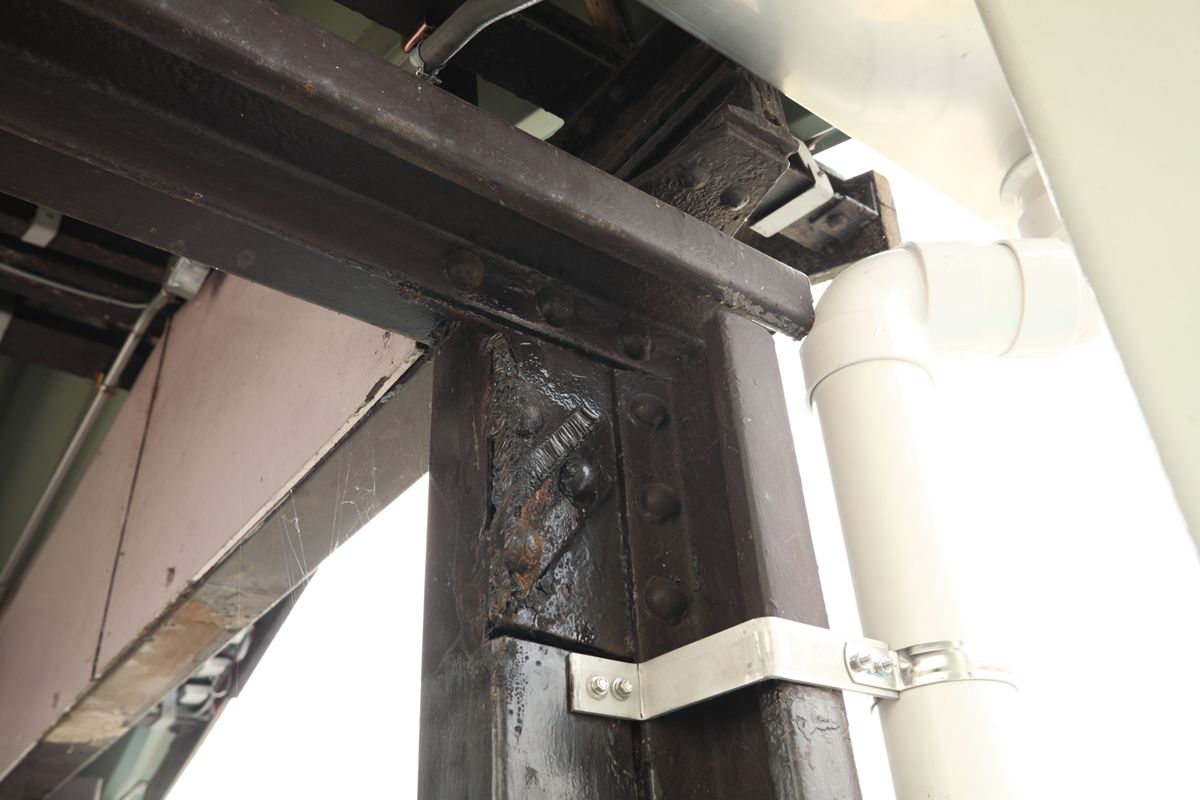 小川町駅の跨線橋は3主桁のトラス橋(再訪)の続き。 トラスはなかなか複雑に組まれていて、上弦と脚が古レールで下弦と斜材はアングル材。しかし… さて、脚。