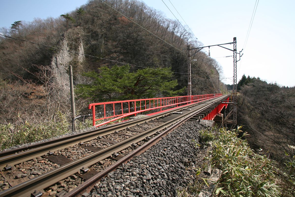 × [PR]上記の広告は3ヶ月以上新規記事投稿のないブログに表示されています。新しい記事を書く事で広告が消えます。 ご覧の通りのトレッスル橋脚2基+鈑桁4連である。こ新川川橋梁についての歴史的鋼橋集覧には誤りがある。 ・橋長×幅員 71.8m ・径間数×支間 4×31.5 この時点で算数がおかしいしが、写真を見れば分かるとおり、トレッスル橋脚間の第2連は、第1・3・4連よりも明らかに長い。そして、下記に見るように、第4連(おそらく第1・3連も)は支間12.9mである。 そうすると、もし橋長が正しいとするならば、71.8-(12.9* 3)=33.1で、第2連の支間は33.1mと推測する。これに現地で気がついていれば、第2連の塗装標記を撮ろうと努力したかもしれない。悔やまれる。 2009年に再塗装されたこともあり、とても美しい。まるでつい最近架けられた橋のようにも見えるが、開通は1937年である。 また写真の羅列だけで終わってしまった。。。 PR |