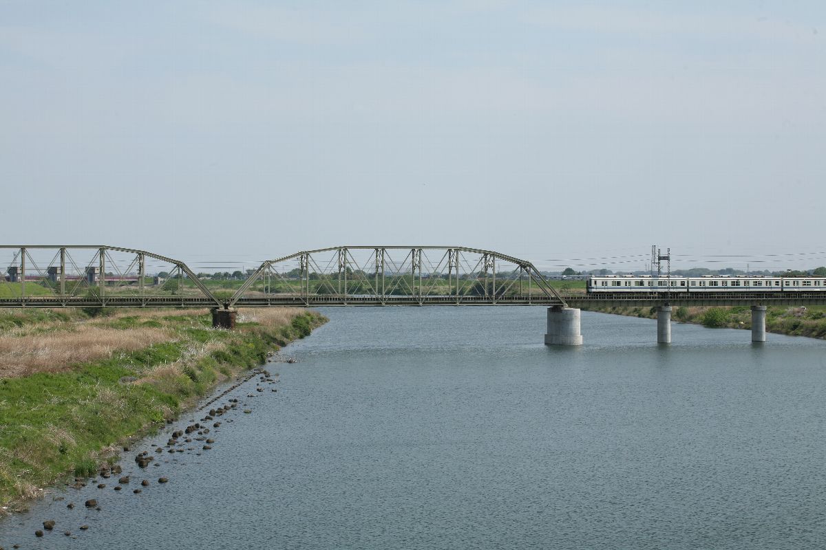 秩父鉄道株式会社 活荷重KS16 支間10.68M WTG810 W 12.5T A256● 材質 SS41 SM41 製作 東鉄工業株式会社 東鉄工業とは、簡単にいうとJR東日本が筆頭株主である、軌道保守や鉄道・道路の土木工事などを得意とする東証一部上場のゼネコンである。少なくとも、事業内容には「橋桁製作」みたいなものはない。強いて言えば「土木、建築工事用資材の販売」が当てはまるか。 また、桁の製作年も意外や意外、新しかった。1980年に架け替えられたということだ。よく見ると、古い桁ではリベット留め、ボルト留めであるようなあらゆる部分が溶接されている。といっても『鉄道構造物探見』によれば、下路鈑桁で溶接構造となったのは1955年(昭和30年)からだそうなので、自分が見た範囲が狭すぎる、あるいは何の変哲もない鈑桁が見えていなかった、ということになる。