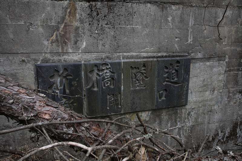 × [PR]上記の広告は3ヶ月以上新規記事投稿のないブログに表示されています。新しい記事を書く事で広告が消えます。 国道361号の、木曽福島町と開田村はともに木曽川の支流にある町で、両者の間には峠がある。いまは地蔵トンネルという長いトンネルで抜けているが、その旧道に、この折橋隧道はある。写真は東側の坑口で、坑門は土砂に埋まっている。開口しているかどうかは定かではない。 その前には伐採された樹木が乱雑に積み上げるように捨てられている。土砂の流入で、いずれきちんと埋まってしまうのだろう。 幸いなことに扁額は見える。右端には増田甲子七の署名がある。第一次吉田茂内閣の改造後、運輸相となり、以後、閣僚を歴任した人物だ。 手の届く高さだが、捨てられた樹木のせいで近づけない。こちらには「新開口」とある。新開とはここから10kmほども手前、木曽福島市街の地名だ。 よく見ると、「隧」の字が不自然である。之繞(しんにょう)の位置がおかしい。 よく見ると、「墜」を「隧」に彫り直している! だれか、彫る前に気がつかなかったのか。文字の誤用、混同はかなり以前からあったと見え、「○○に『墜道』と書いてあった」ということで「隧道は墜道とも書く」と主張する人もいるが、それは「独壇場(どくだんじょう・誤)」が「独擅場(どくせんじょう・正)」にとってかわったような話なので、私はその説には与しない。 * * *