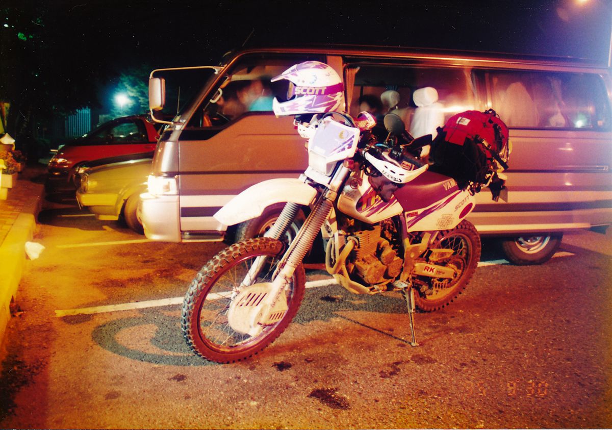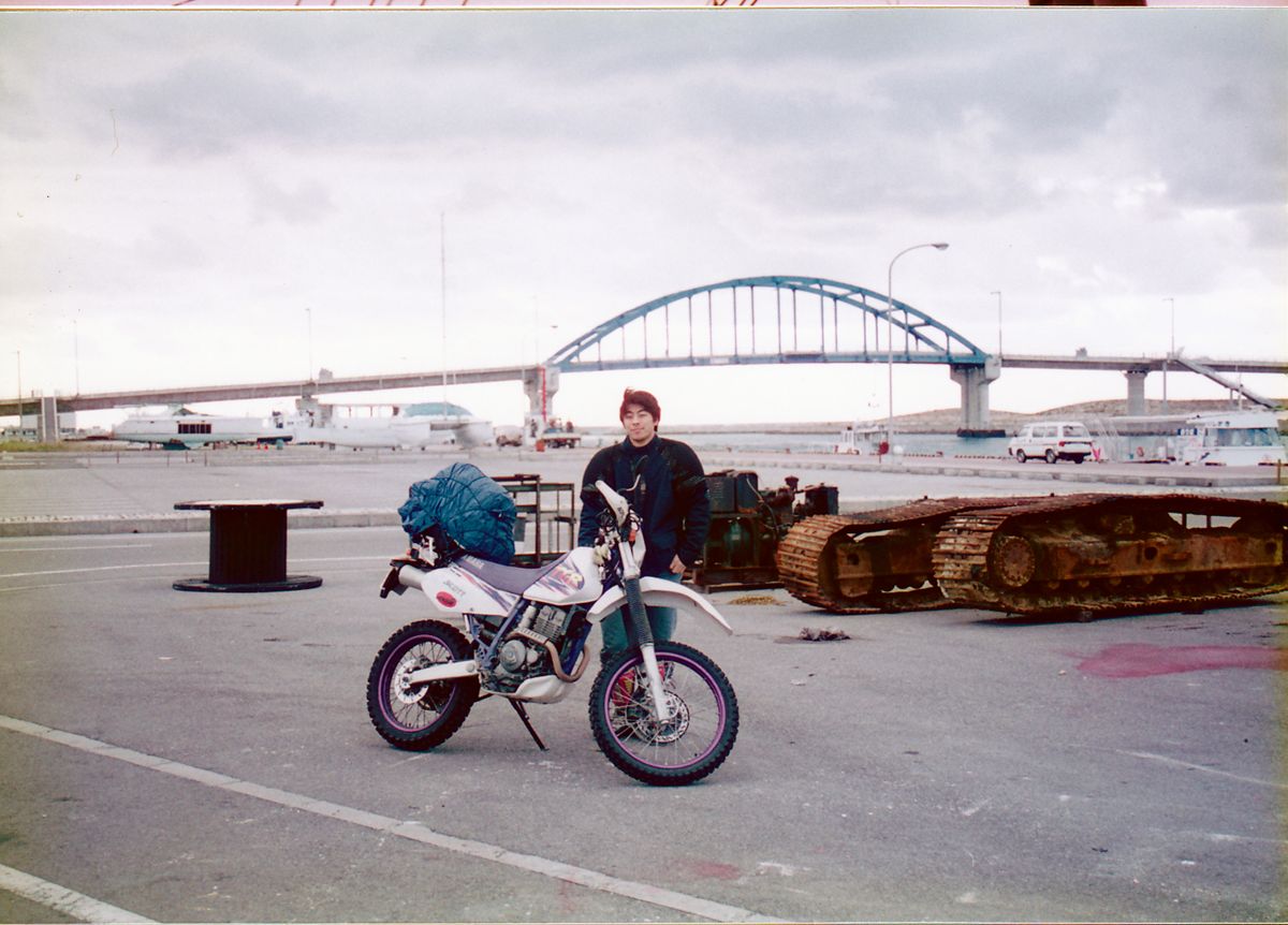 飛行機には、デイパックとタンクバッグだけで乗り込んだ。まさかこんなことになると思っていなかったので、靴も持っていないから、オフロードバイクのブーツだ。上着はバイク用の、肩パッドの入ったゴアのジャケットだ。頭は…三が日は銭湯が休業だったので、4泊、風呂に入っていないことをなんとかバンダナで隠している。荷物にくくりつけてあるのはトレーナーだ。