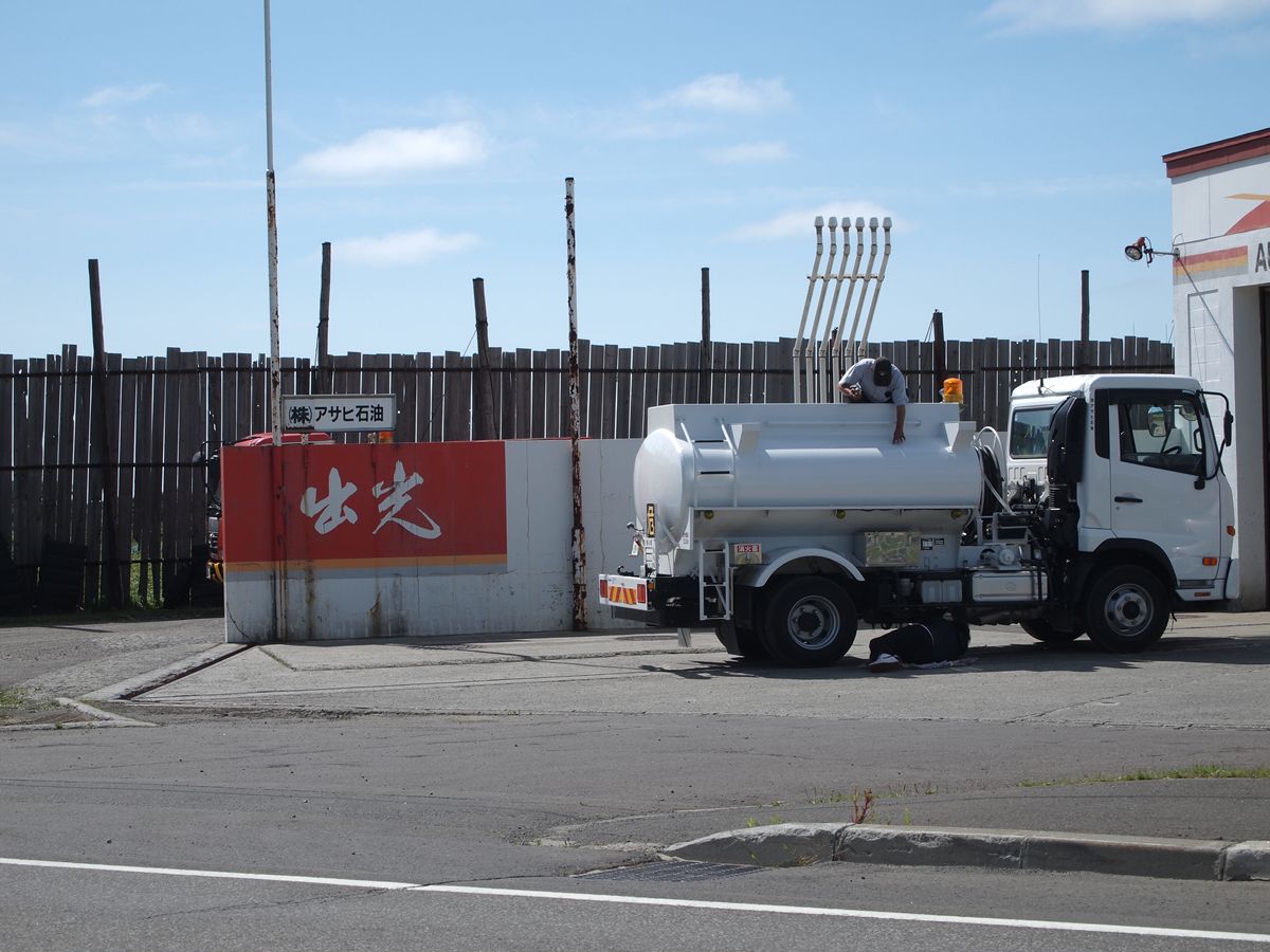 この場所は、とてもわかりやすい。かなり代縮尺の地図でも、この場所を説明できる。国道とJR線の位置関係は、たいていきちんと書かれているからだ。私が部屋に貼っている100万分の1の北海道の地図でも、もちろん書き分けてある。その陸橋は、一直線のJR室蘭本線の撮影の好適地だ。なにしろ、西を向いている。 (RMのサイトより画像を拝借。この画像も色味がかなり違う。実際の本の製版が素晴らしい) これをRMに送ったら、表紙に採用してくれた。もちろん、かなりのトリミングをされている。見ず知らずの他人に評価をされたということが、とても嬉しかった。そして、原版であの大きさのものが、ここまで大きく引き延ばしても破綻しない製版に驚いた。ドラムスキャナでポジを色分解していた半DTP時代の、ひとつの頂点だと思う。しばらくして、RMは製版がめちゃくちゃになり、写真のセレクトもネタモノや編成写真主義になってしまった。大判のグラフ誌という点で大好きだったRMだが、そういうわけで、いまはもう読んでいない。 温川橋の南側に戻ると、出光のサインが見えた。計量器も古いもののようだ。 サインポールやサービスルームは現在のスタイルに切り替わっているのに、計量器は、何世代前なのかはわからないが、昔の意匠のまま。ネット地図を見るとここには出光のアイコンはなく、一方で検索すると店舗としても出てくるので、最近閉鎖したのかもしれない。 サインポールは新しいように見えるが、それでもどことなく古い感じもする。これは旧ロゴで、2006年から現行の楕円になっている。 ローリーは無地。塗装変更中だろうか。 |