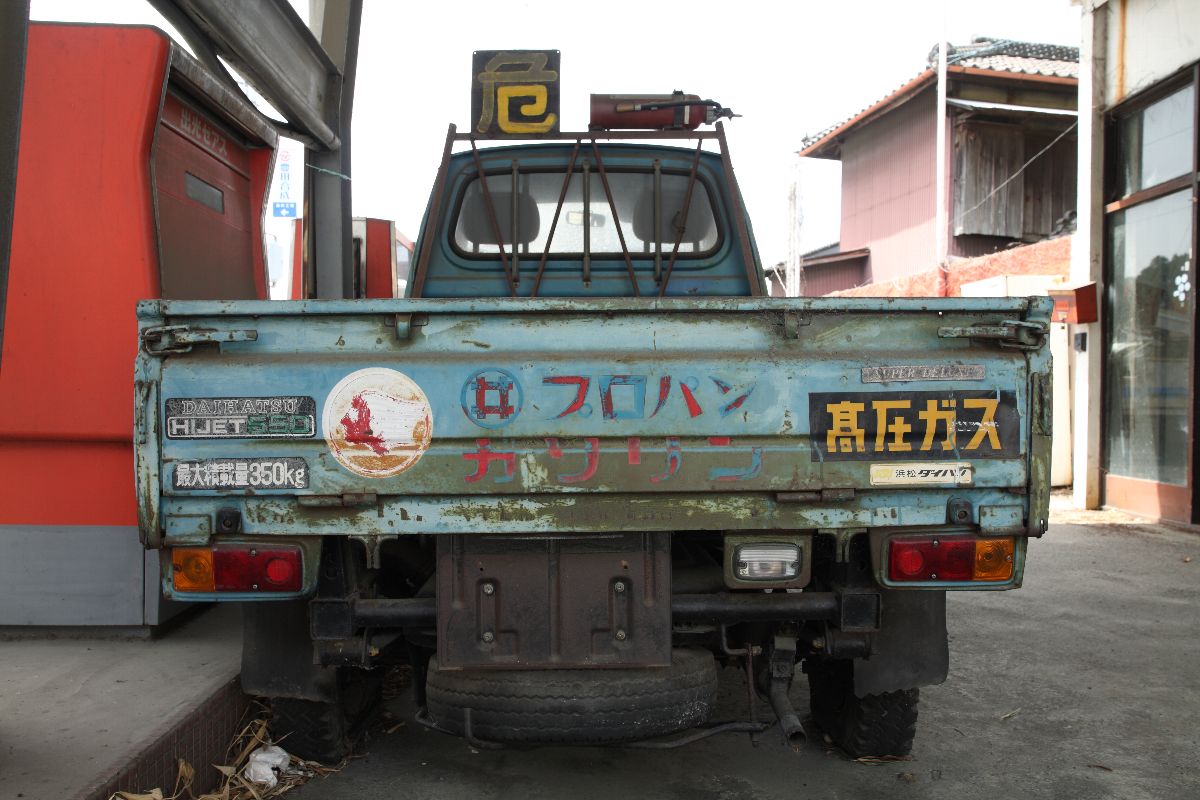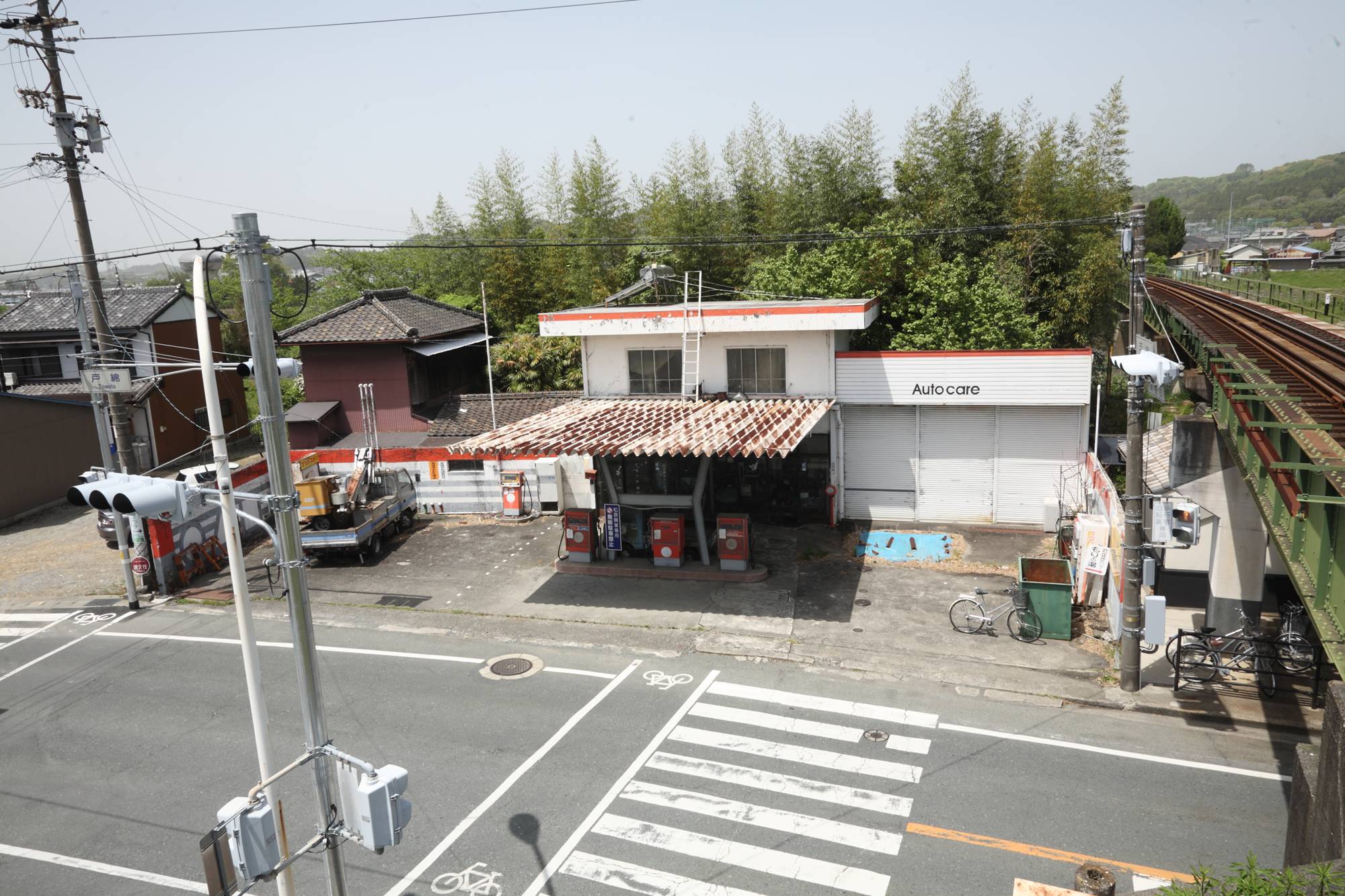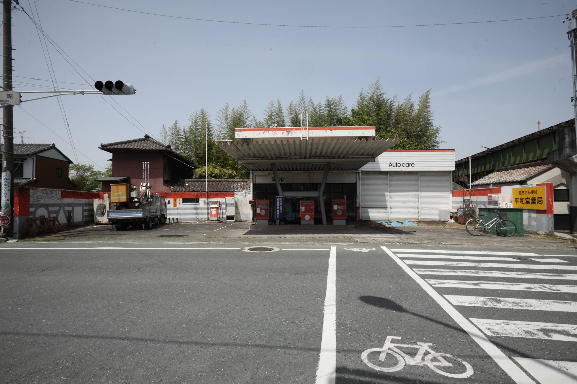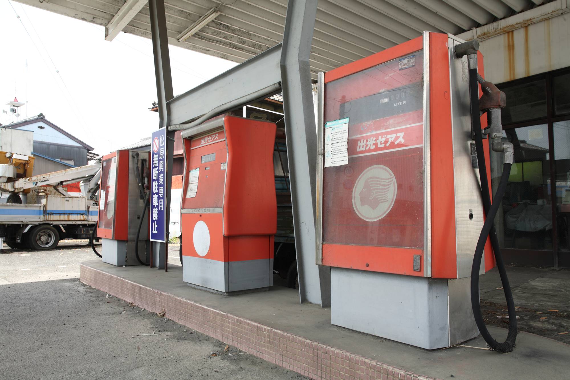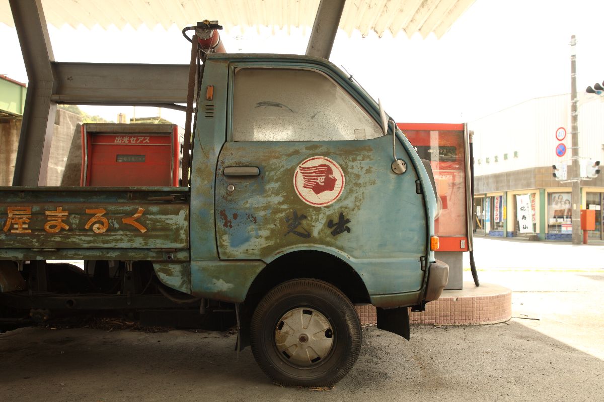 × [PR]上記の広告は3ヶ月以上新規記事投稿のないブログに表示されています。新しい記事を書く事で広告が消えます。 写真右端に写る橋梁については下記をご参照いただきたい。 ・太田川橋梁(天竜浜名湖鉄道)その1 ・太田川橋梁(天竜浜名湖鉄道)その2 キャノピーは、中央がくびれたH形をしている。給油所は、キャノピーの支柱はまっすぐ建てたくないと思っているのだろうか。屋根は波板の鋼鈑なのに、支柱は斜めになったりくびれていたりすることが多い気がする。いや、それはすてきなことだという意味だ。 駐車場である限りは、しばらくこの姿のままであり続けると思う。 PR 静狩の集落内で難度か鉄道写真を撮影したことがある。西に向かってどん詰まりの集落なので、引き上げるときには東に向かうのだが、この出光まで1km以上の距離がある集落内からでも水銀灯(だと思うのだが)が見える。たいていの場合は靄の向こうにボワッと浮かんでいるように見える。 サービスルームで気がついたのは、採光窓の上にあるシャッターだ。閉店時は施錠するだけでなく、シャッターを下ろすのか。
