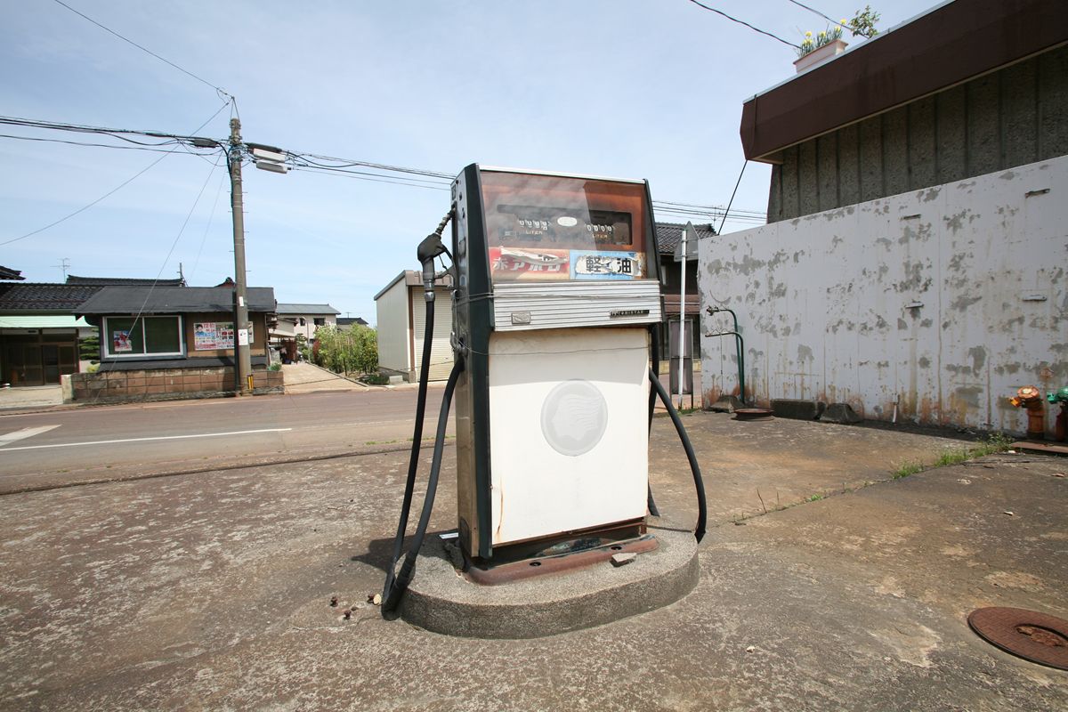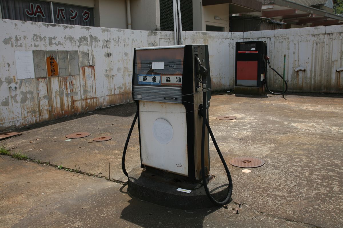 × [PR]上記の広告は3ヶ月以上新規記事投稿のないブログに表示されています。新しい記事を書く事で広告が消えます。 クルマを相手にしているわけではないような、なんともいえない給油所の跡。残念ながら、現役ではない。 PR 東京エンヂニヤー・サービスはタツノ系、トキコは日立系。このあたりの系譜もおもしろそうだ。 【2012/5/26追記】 @g_standさんより、出光ロゴの後ろに見えているのは出光灯油の炎のマークで、その下に「出光灯油」と書いてあった痕跡が見えるとのこと。さらに、防火壁の下部の薄い水色のラインは出光灯油の塗装パターンであるとも教えていただいた。ありがとうございました。 ふと、いい感じの出光があった。いかにも昔からやっていますという雰囲気に、まずグッとくる。 50代か、男性に給油後してもらったあと、ちゃんと写真に収めたくて、ついに言った。 「このスタンドすてきなので、写真撮らせてもらえますか?」 この給油所のどこに惹かれたかというと、工場部分とサービスルームのバランスの良さ、そしてサービスルームの窓のRだ。 (1981年、古津駅)