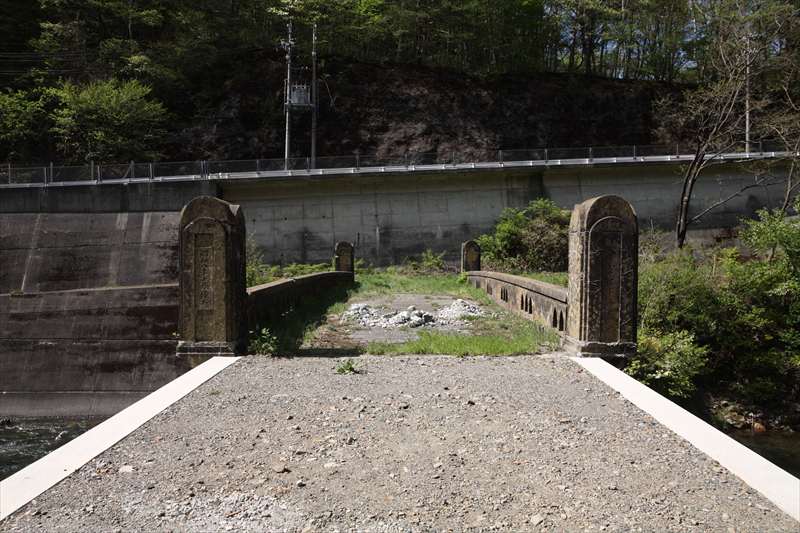 こちらにも扁額はあり、「折橋隧道」とあるかに見える。しかし「隧」の文字部分は苔に覆われて見えない。その下には「開田口」とある。そして、これまた苔で見えないが、おそらく増田甲子七の名前が右下にあるようだ。