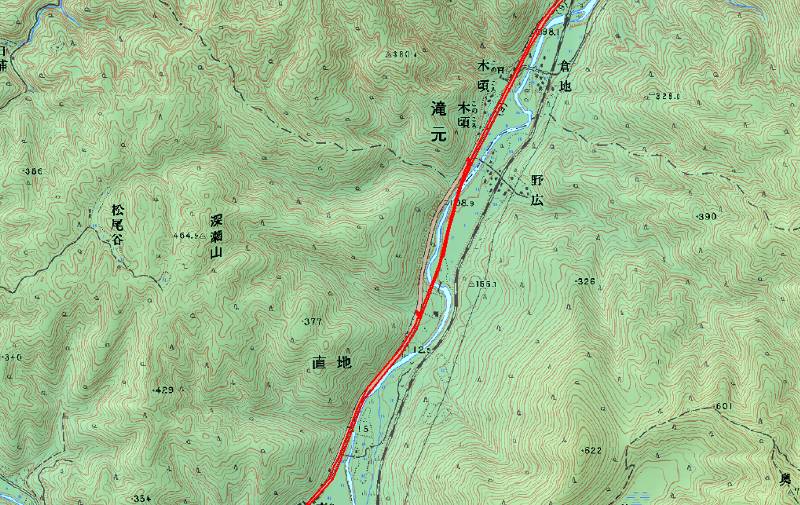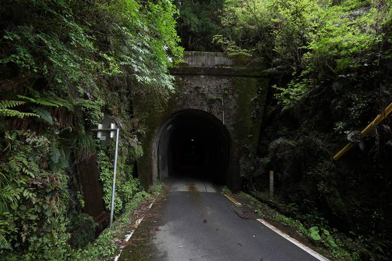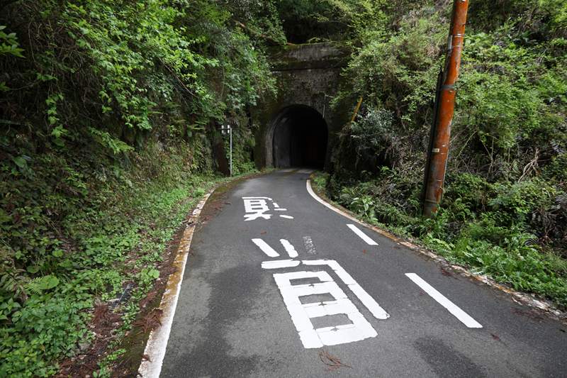 ここのバス停はあるが、「町営バス」と書いてある。2006年まで存在した錦町営ということだ。後継のバスはあるが、おそらくここは通っていない。なにしろ隧道が通行止めなのだ。…ではなく、無人の隘路をわざわざ通らなくても、新しいバイパスが天空を走っている。