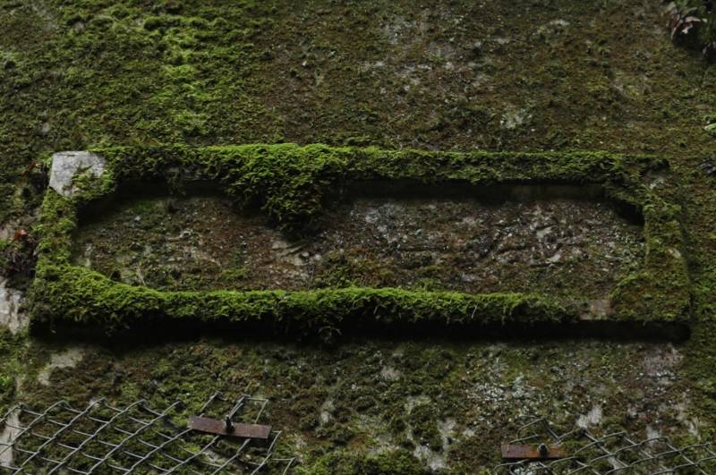立派な扁額。ただし、扁額ごと坑門にひびが入り、それを補修した跡がある。また、スパンドレルには枯れ草ワイパーの跡がある。
