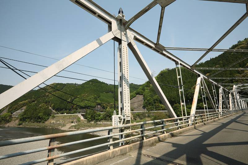 ▲(7)1931-11 橋名: 天田橋 ルビ: あまだ 開通年月日: 1931-11 橋長(m): 186 幅員(m): 5.5 形式: 下路単純トラス橋 l=1x45.7 プレートガーダー 播磨造船所製 木桁橋 下部工: 特記事項: 1953年7月18日一部流失、9月 復旧 ,1954年