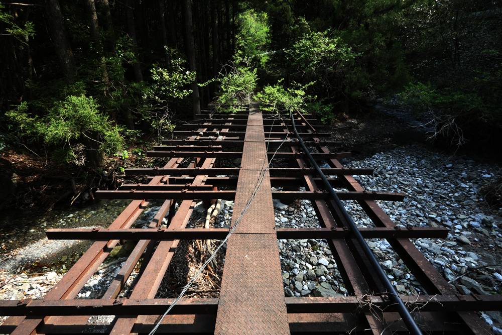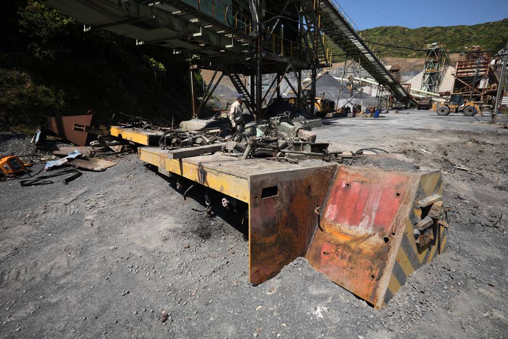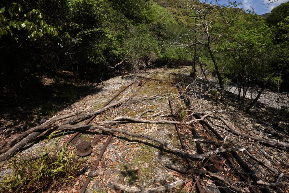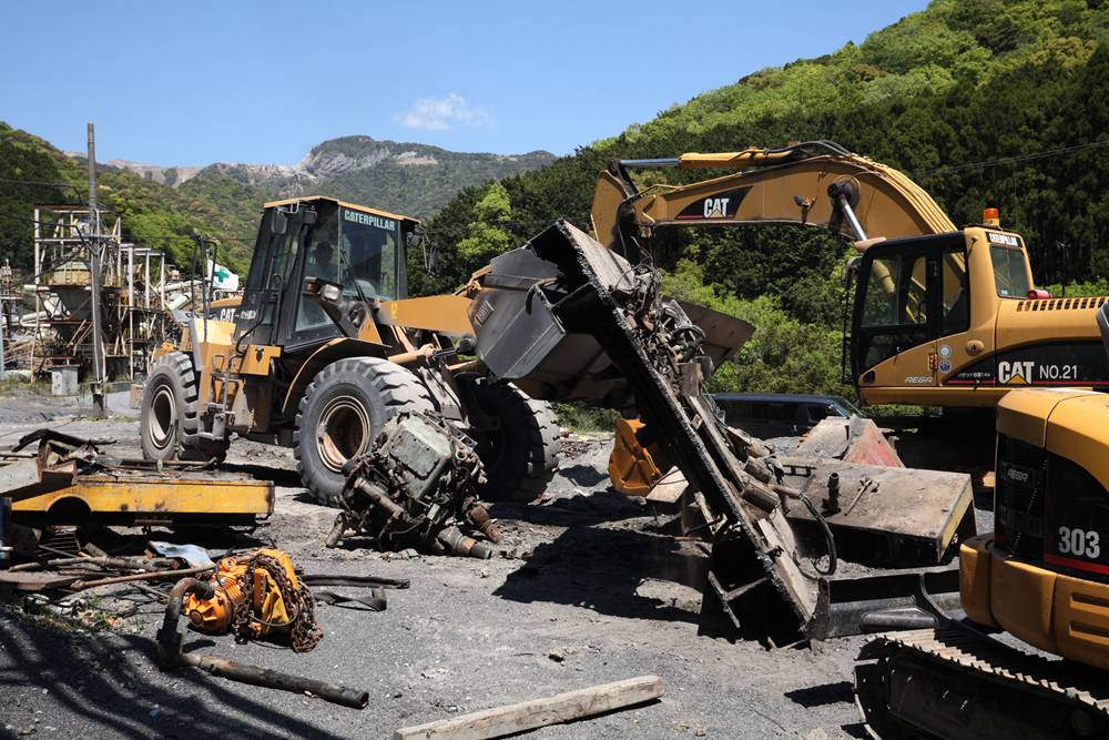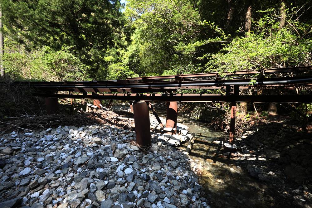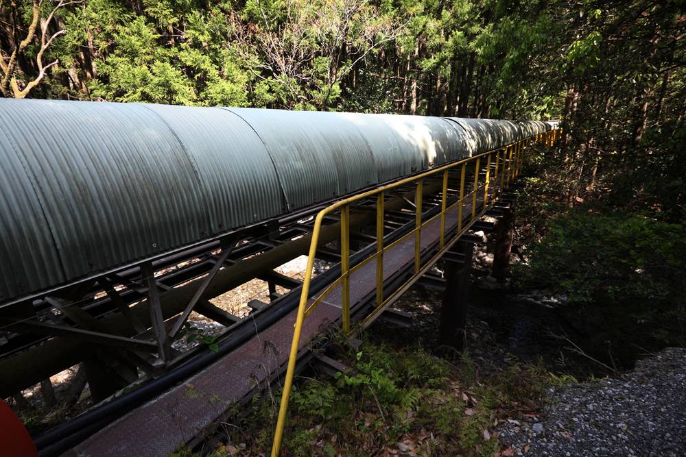 横桁が強そうな橋(国見山鉱山中部軌道)国見山鉱山のベルトコンベアと、そこに残る中部軌道の線路国見山鉱山D-507の解体国見山鉱山の光景
