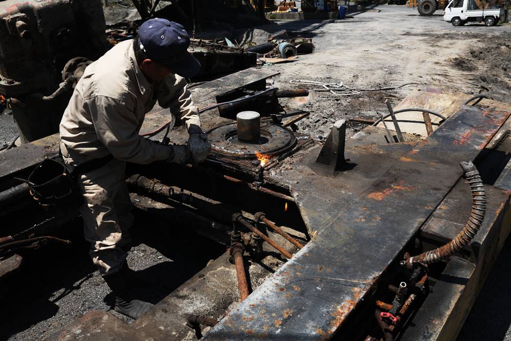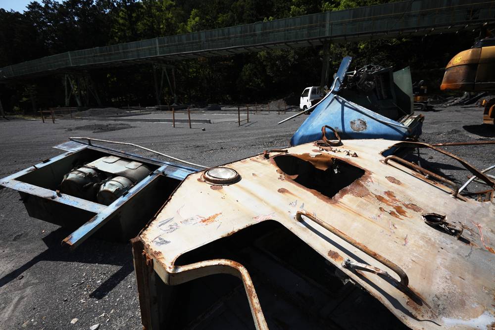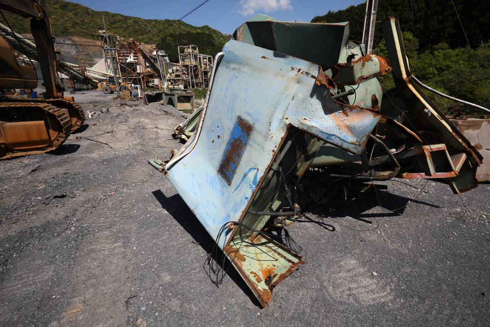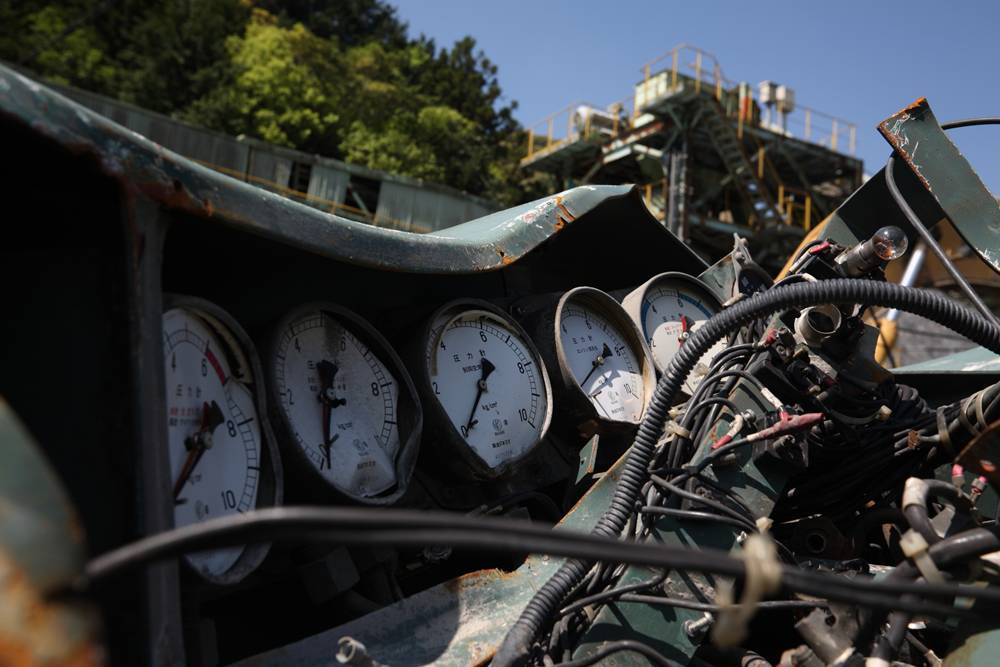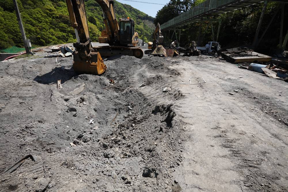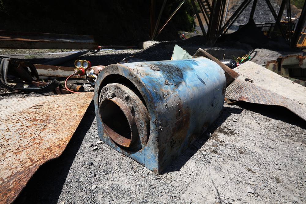横桁が強そうな橋(国見山鉱山中部軌道)国見山鉱山のベルトコンベアと、そこに残る中部軌道の線路国見山鉱山D-507の解体国見山鉱山の光景