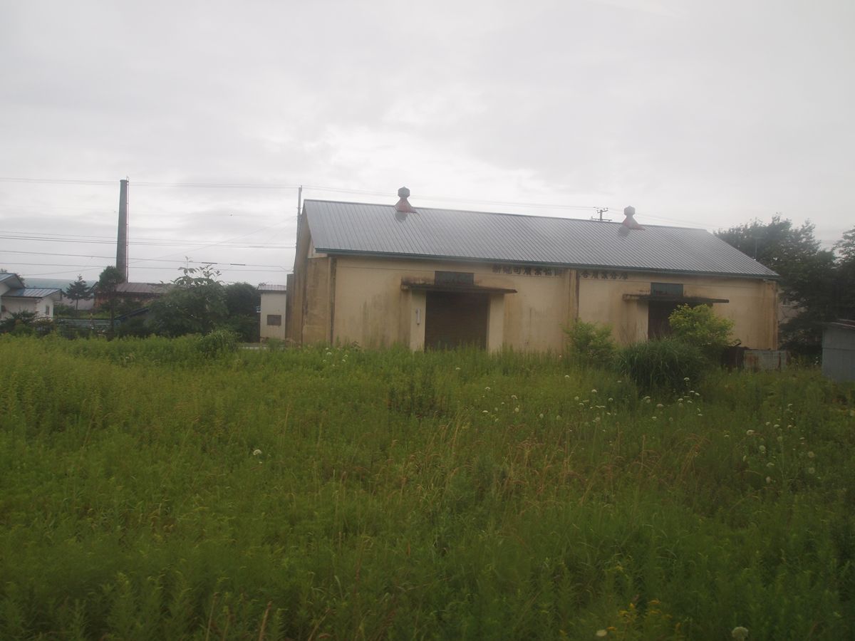 函館本線の「藤城線」。ここは振り子が利く部分で、車内からも「飛行機のように」内側は家の屋根が、外側は空が見えるだけになる。「失敗して」画面が傾いているが、それが空撮のような効果になるとはポジを眺めていたときには気がつかなかった。