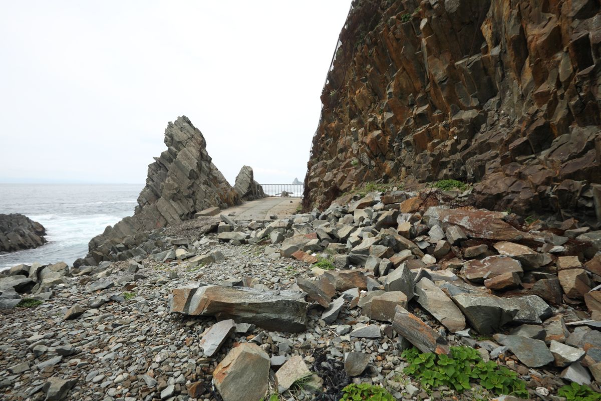 北海道の内浦湾沿い、室蘭から長万部に向けて走る国道37号。不思議と、この国道は西から東へしか走ったことがない。礼文華の難所を越え、海側に並行していたJR室蘭本線を陸橋で渡ると、この出光がある。ここは静狩集落、長万部側の「平野部」のどん詰まりだ。