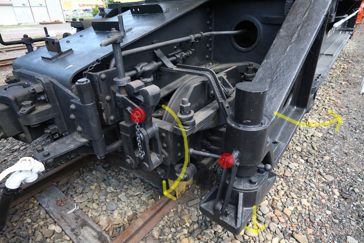 ひとつ疑問なのだが、ブレーキシューの上に伸びてきてる細い管は、冬期にシュー凍結防止用のために蒸気を噴き出す管だろうか?