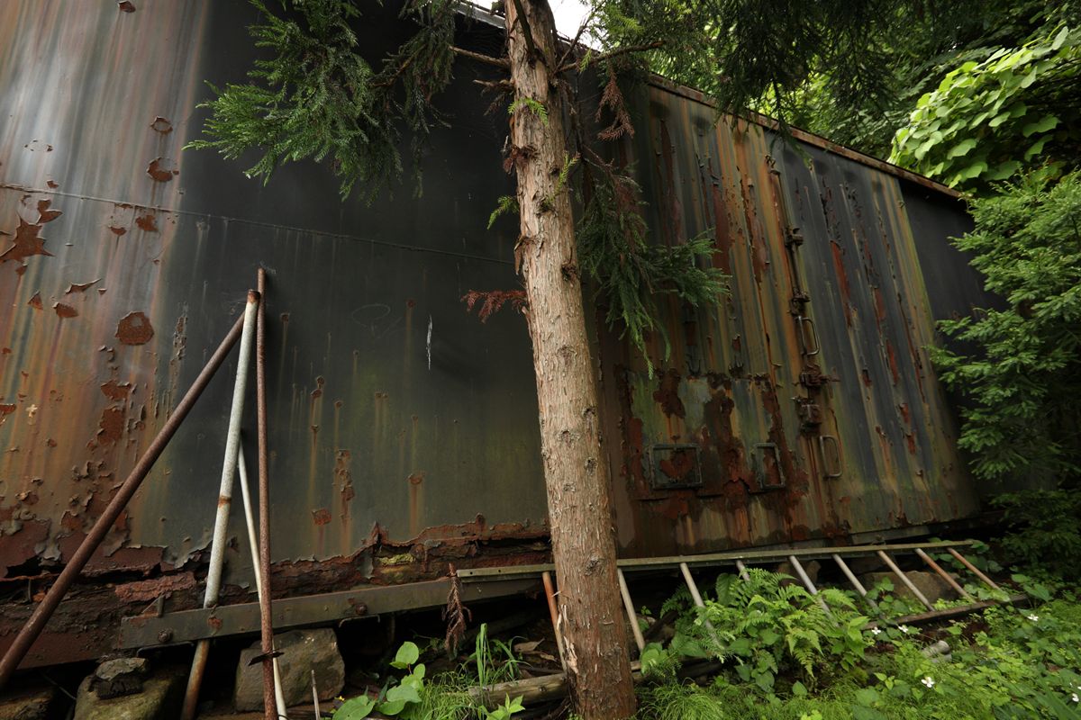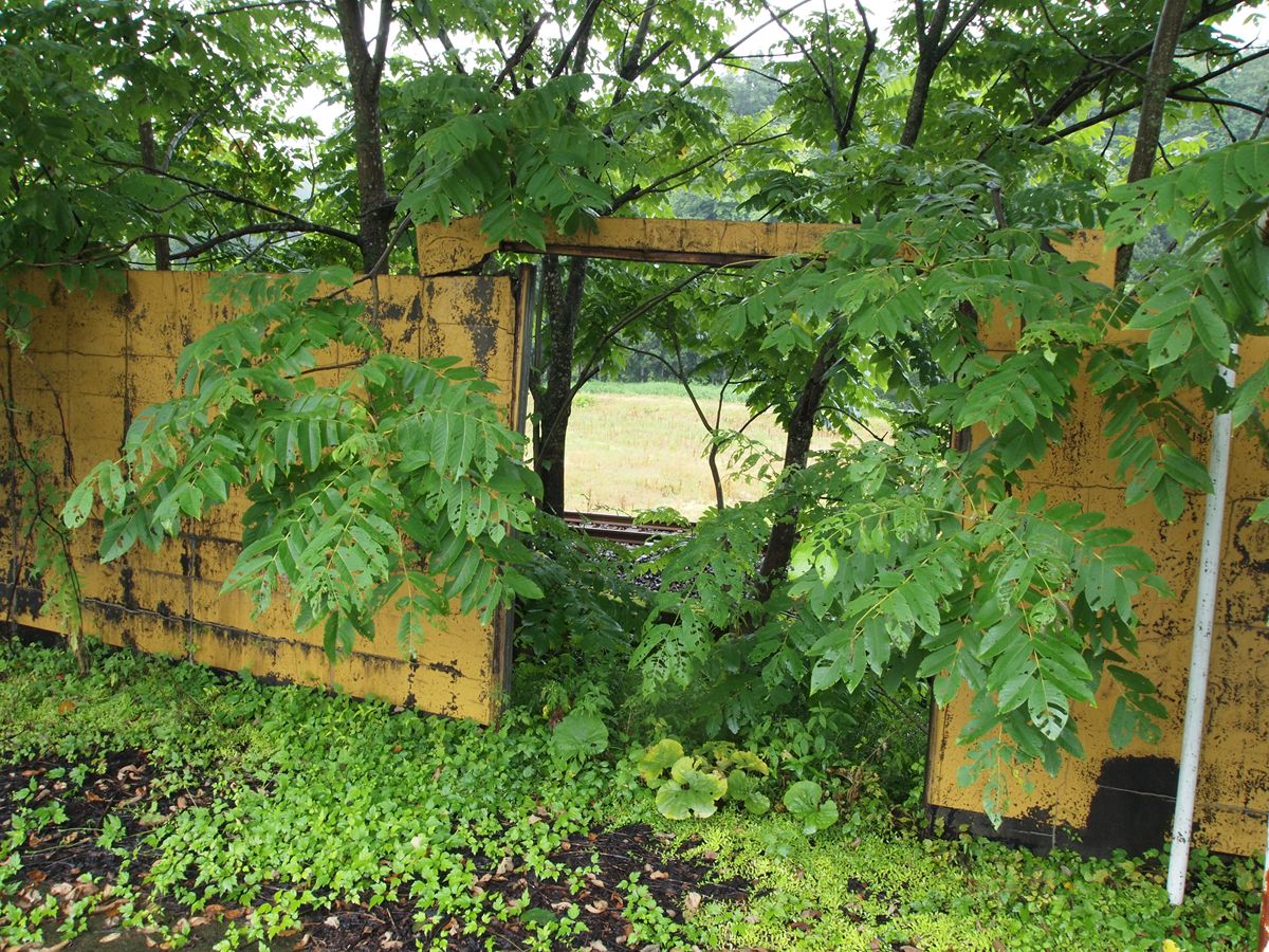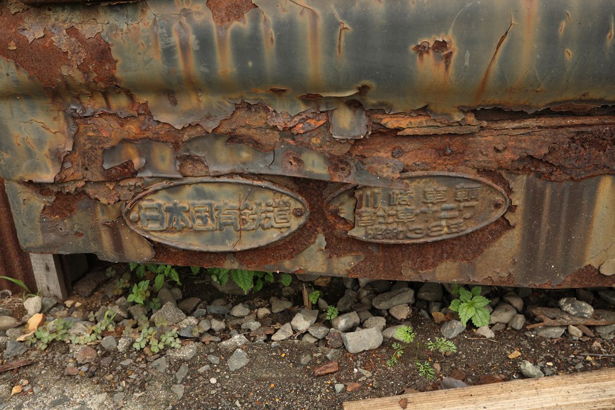 それを外から。脚はすべて古レール。ただし、錆びがひどく、陽刻はまったくわからない。