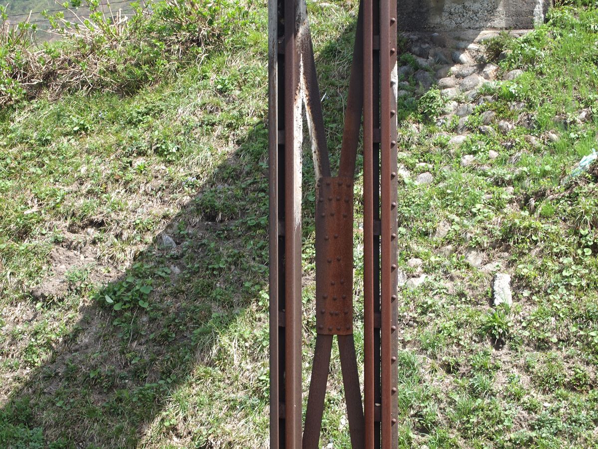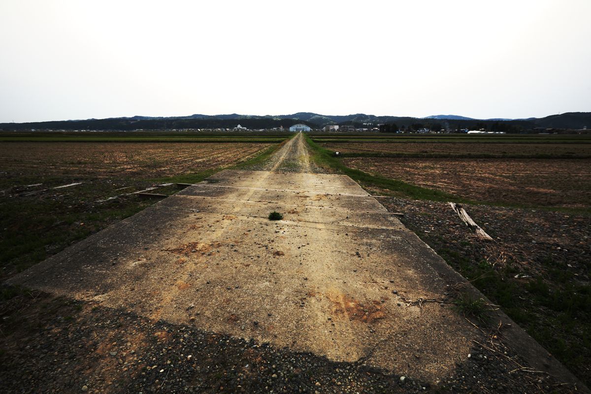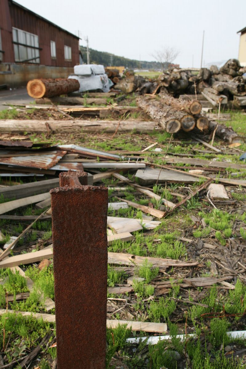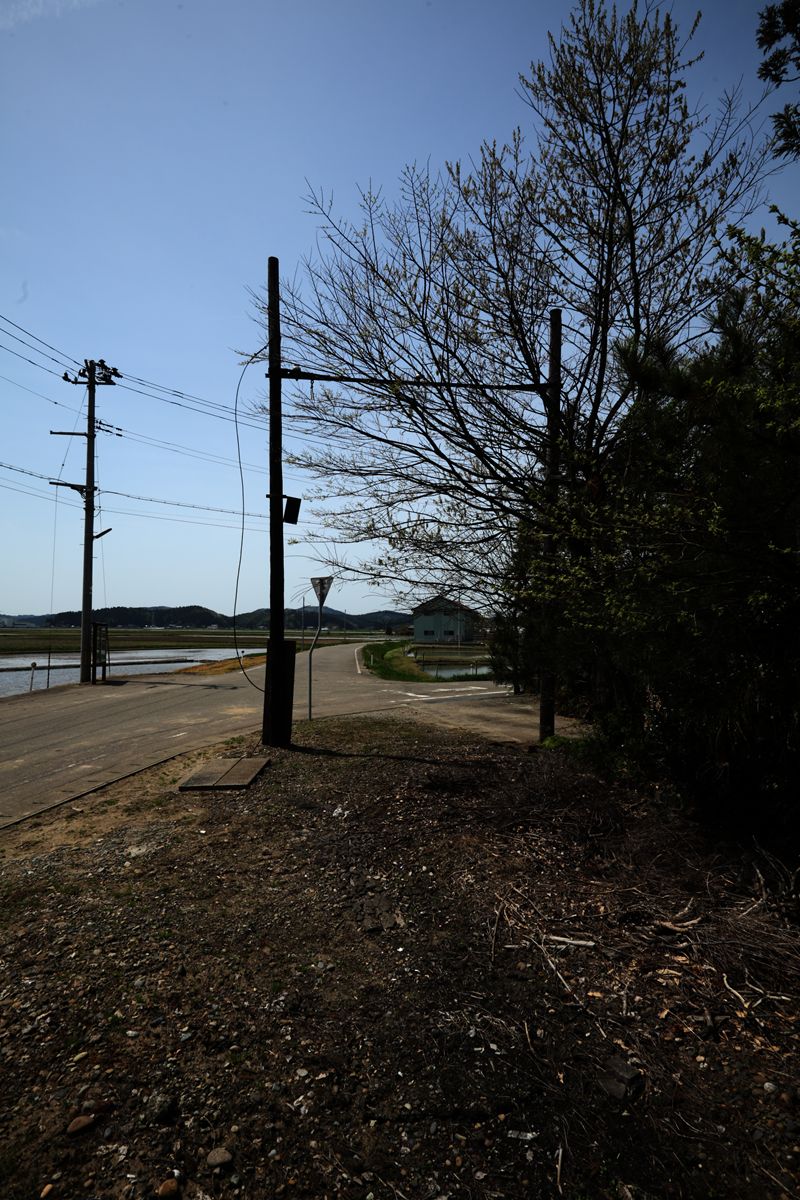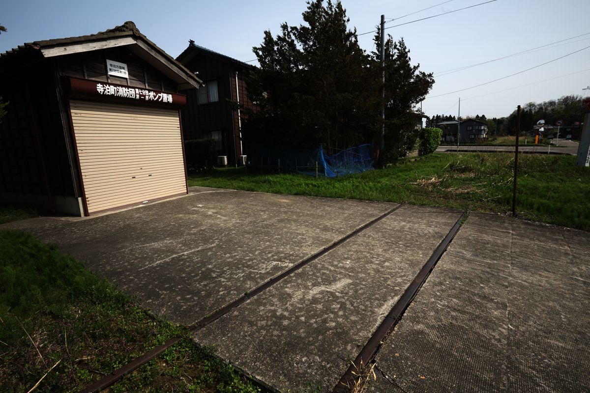 与板の街中には、いまだ越後交通の廃線跡が堂々と残っている。ホーム跡も容易にわかる。関係建築物を解体したものと思しき残骸もある。更地化したところは、運送会社の駐車場になっている。