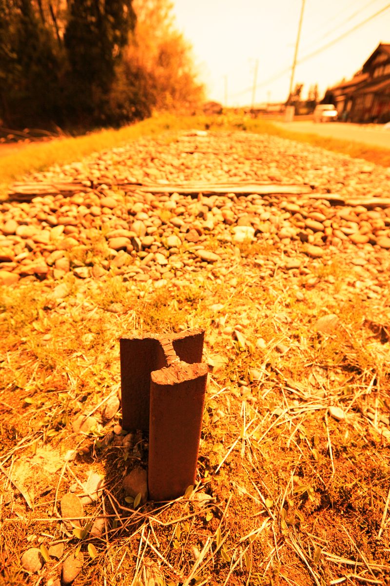 もっとも、駅(跡)は街の中心ではなく、住宅地が尽きてそろそろ他の用途、たとえば田畑や山になろうかというあたりにあるので、残っているのもむべなるかなと思う。西に向かう廃線跡は遊歩道になっている。