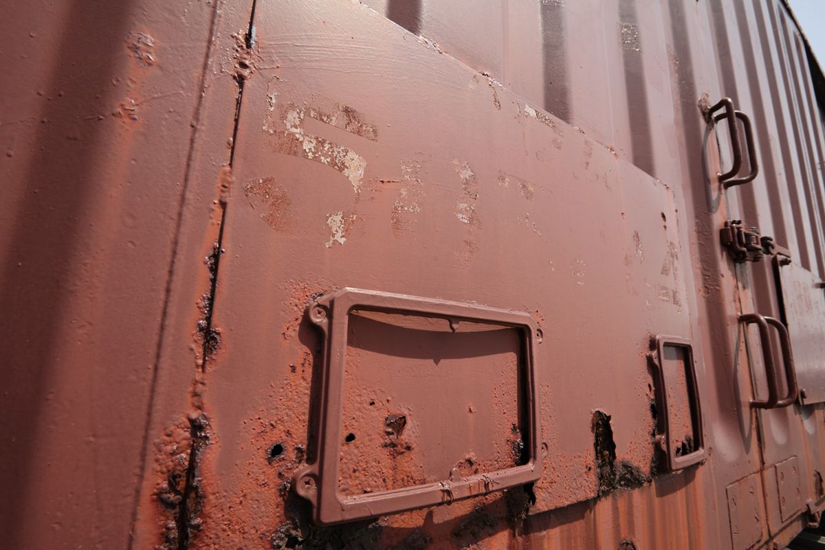 角度を変えて。妻面に掲げられている「日本通運」。中央の円形はもう読めないが、「通」のロゴマークと推察できる。