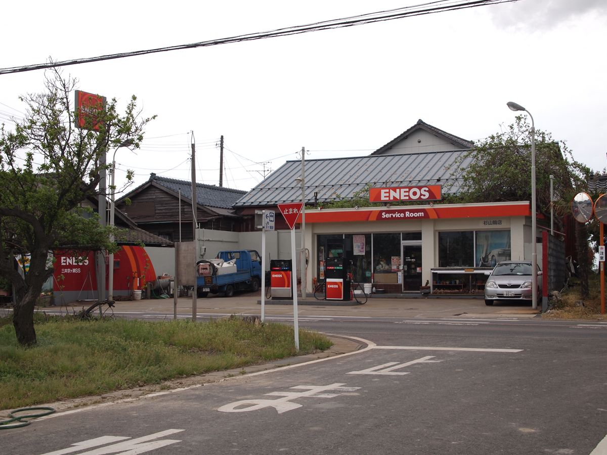 サッシはすべてアルミ(?)化しているが、その外枠は木製のまま。そして、波板(トタン?)や細い凹型が入った板を巻いたこういう外装は、新潟ではよく見るのだけれど、他の地域ではどうなのだろう?