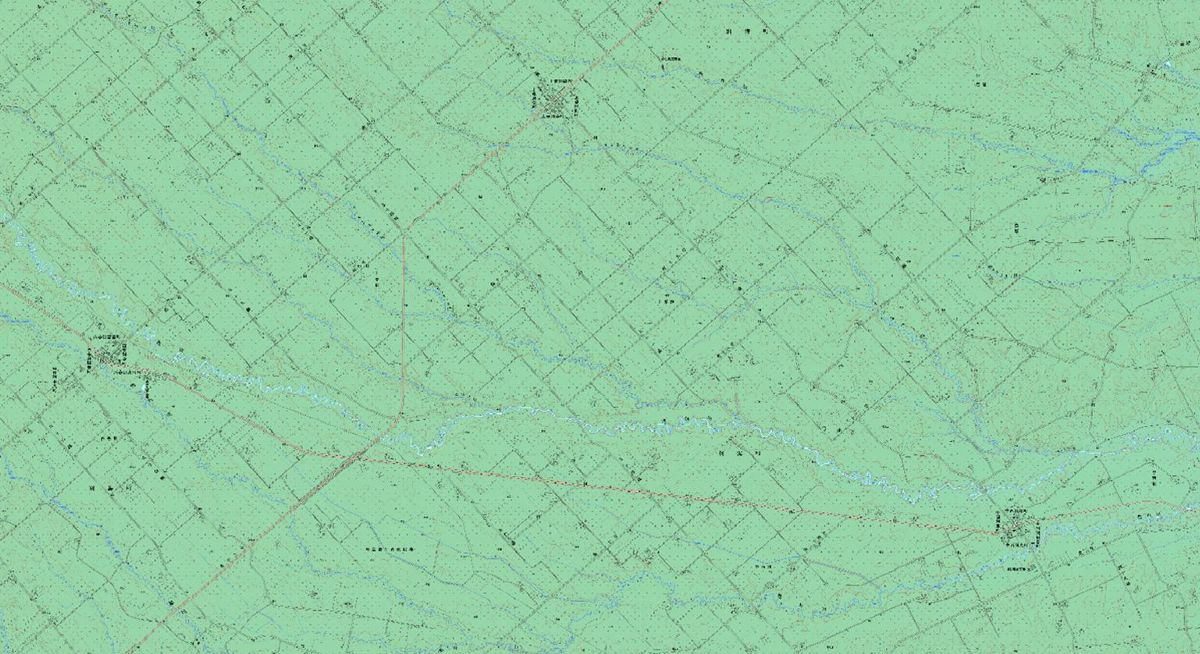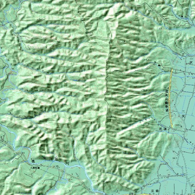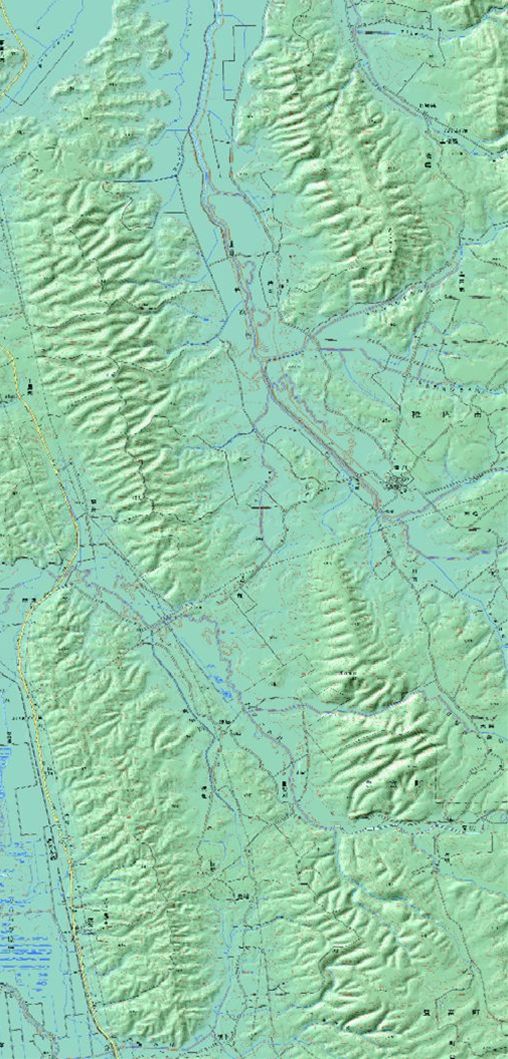 前後に道路がない。まるで、鉄道の廃線跡のようだ。…いや、トラスの軸とは直角方向に、上記画面内に廃線跡はあるのだけれど。