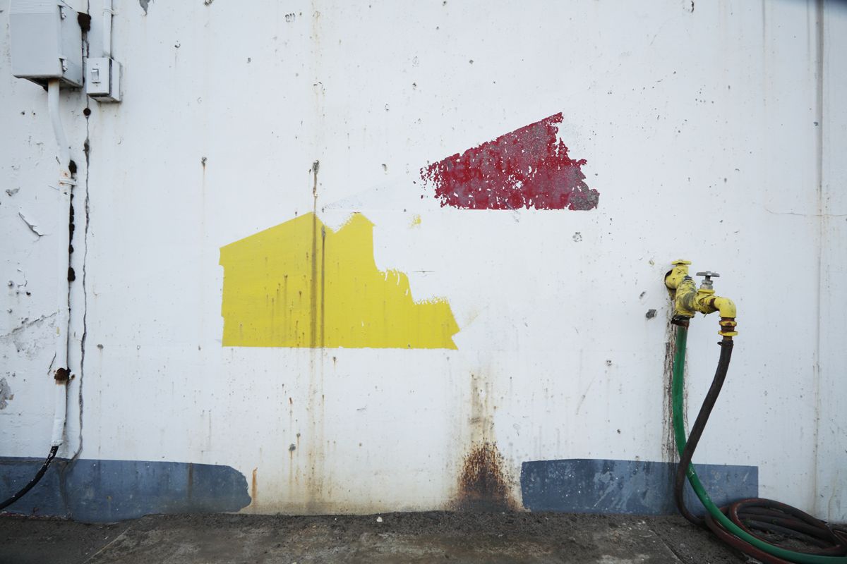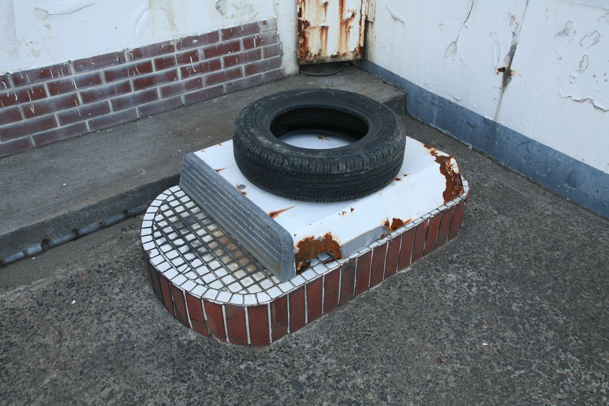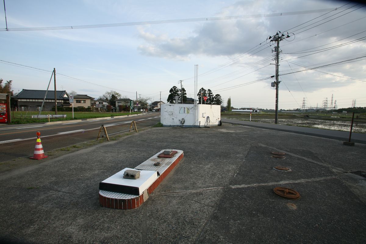 1枚目の写真でいうと、左側の端部。鉄道になぞらえて言うと、左から、単線/複線/複線の廃線跡。ここは、コンクリートの柵があり、隙間も狭いので、自由に撮ることはかなわなかった。