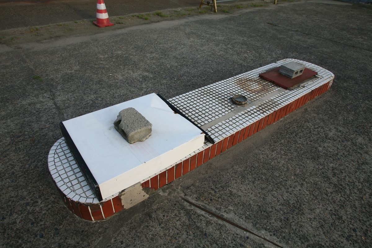 もっとも長い桁。衛星画像で見ると、スパンは60mくらいか。この桁と平行する奥の桁はスパン70mほどだろう。