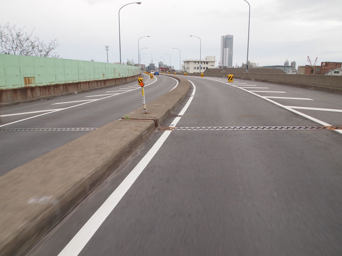 新潟みなとトンネルの「山の下みなとタワー」から、こんな橋が見えた。