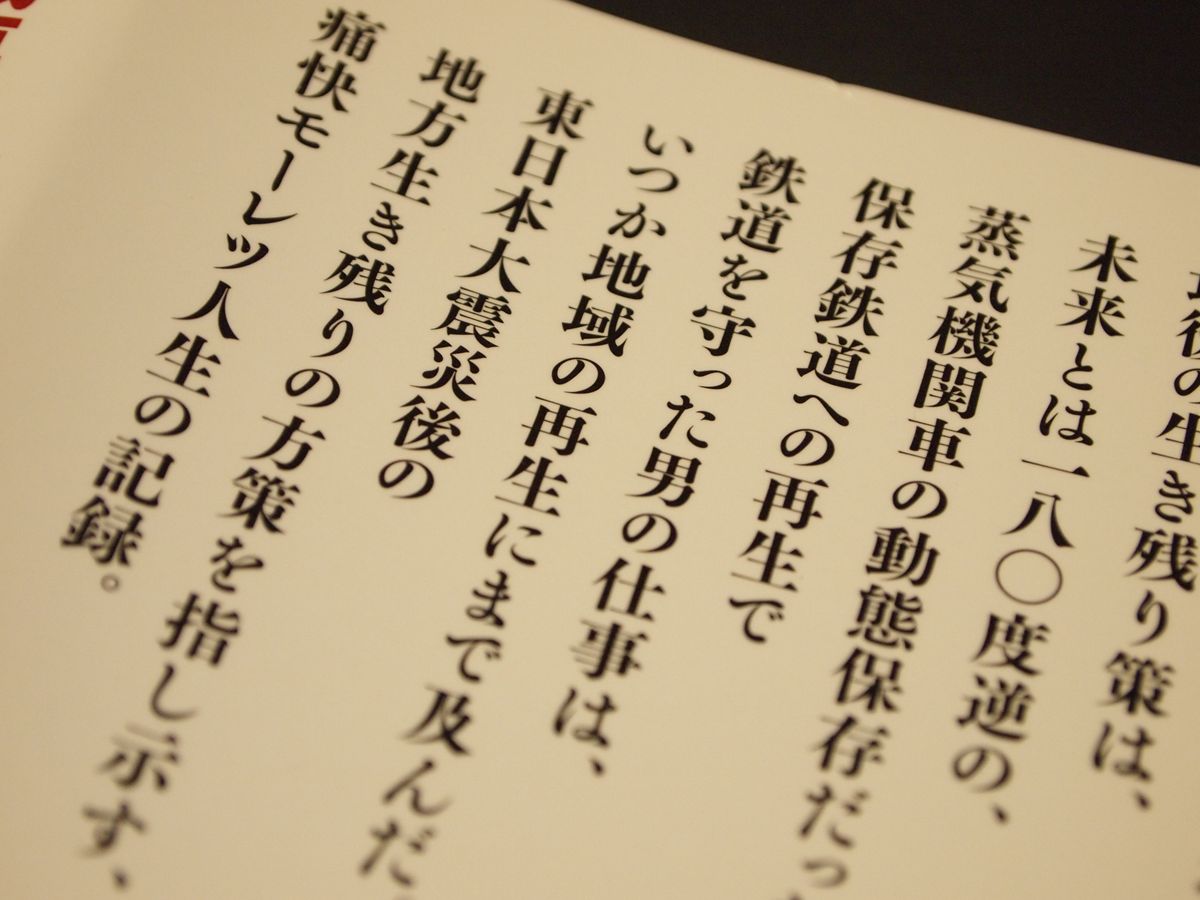 帯の下部に「鉄道・ノンフィクション」と書いてある。書店に対するアピールだ。そういう観点で鉄道ファンが読んでも十分おもしろいが、本書はこれは経済・経営書でもあると思う。「会社とはこうあるべき」といった指針がいかに大切かを繰り返し説いている。書店は、そういう売り方をするといいと思う。