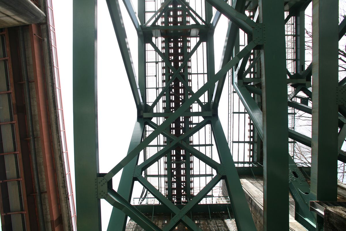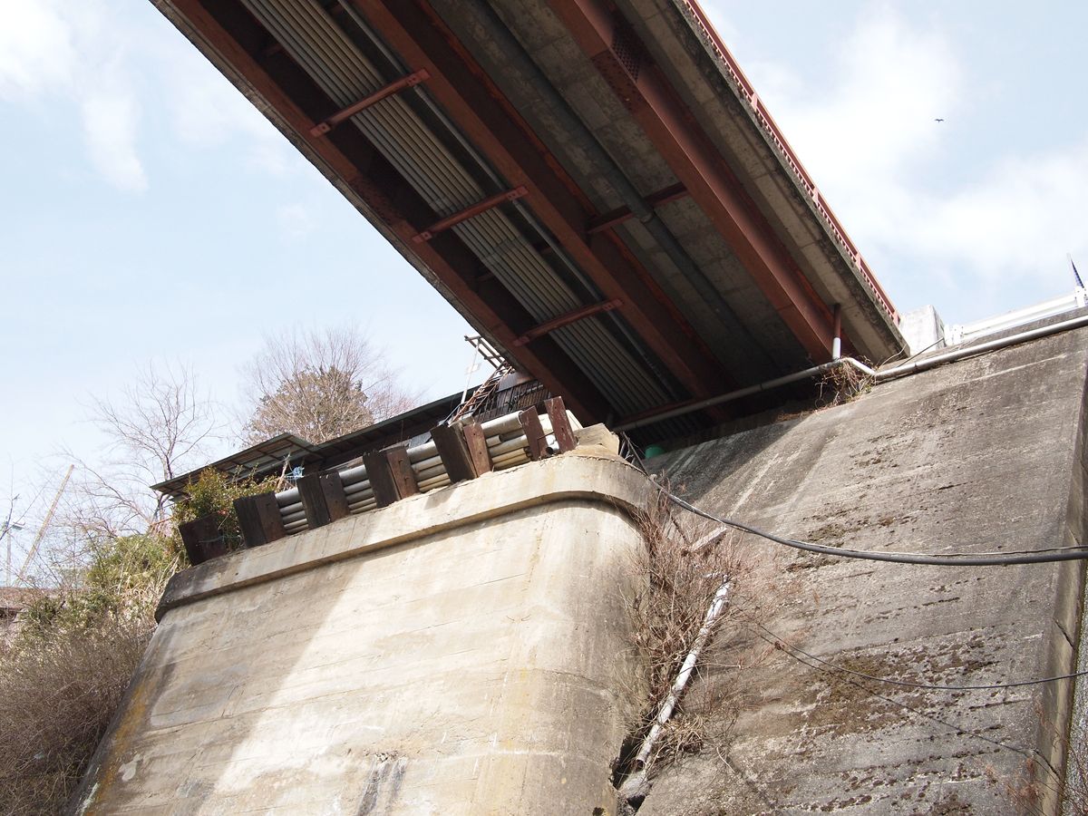 上路トラス橋や上路カンチレバートラス橋ならば支承を設けるだろうし、ラーメン橋にしても同様か、あるいは鋼材の角度がおかしい。(上路アーチ橋も支承を設けるのではあるが…)