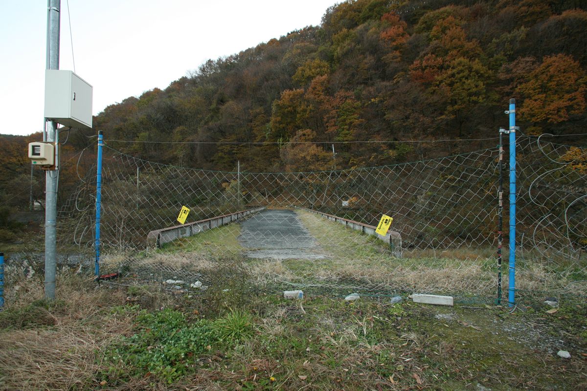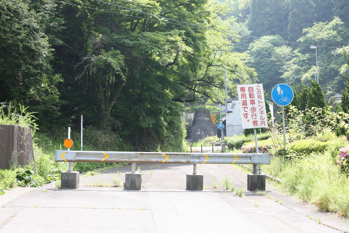 上写真から180度振り返る(隧道から出てまっすぐ見据えた状態)と、このようにゲートがある。冒頭のYahoo!地図ではこれでもかというくらいにゲートが地図にプロットされている。