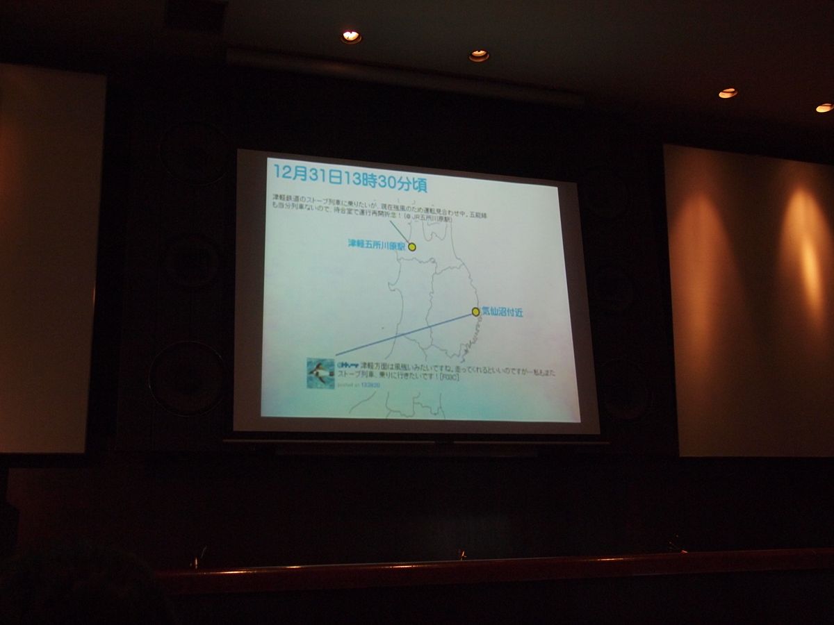 会場内は、イベントがイベントだけにPCを開いている人が多かった。私はiPadを借りて参加。携帯だといろいろつらいので。また、ツイッターイベントなだけに、会場内で「ツイッター上では知り合いなんだけど、会うのは初めて」のような挨拶があちらこちらで聞こえる。私のTL上にいらっしゃる方も多い。