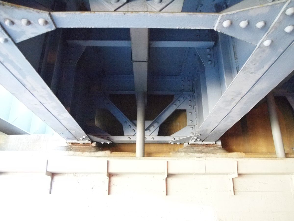 この、対傾構もフランジもスティッフナーもぶっとい気がするのは、桁高さを抑えるためにそれぞれの部材に強度を持たせているのかもしれない(←当てずっぽう)。