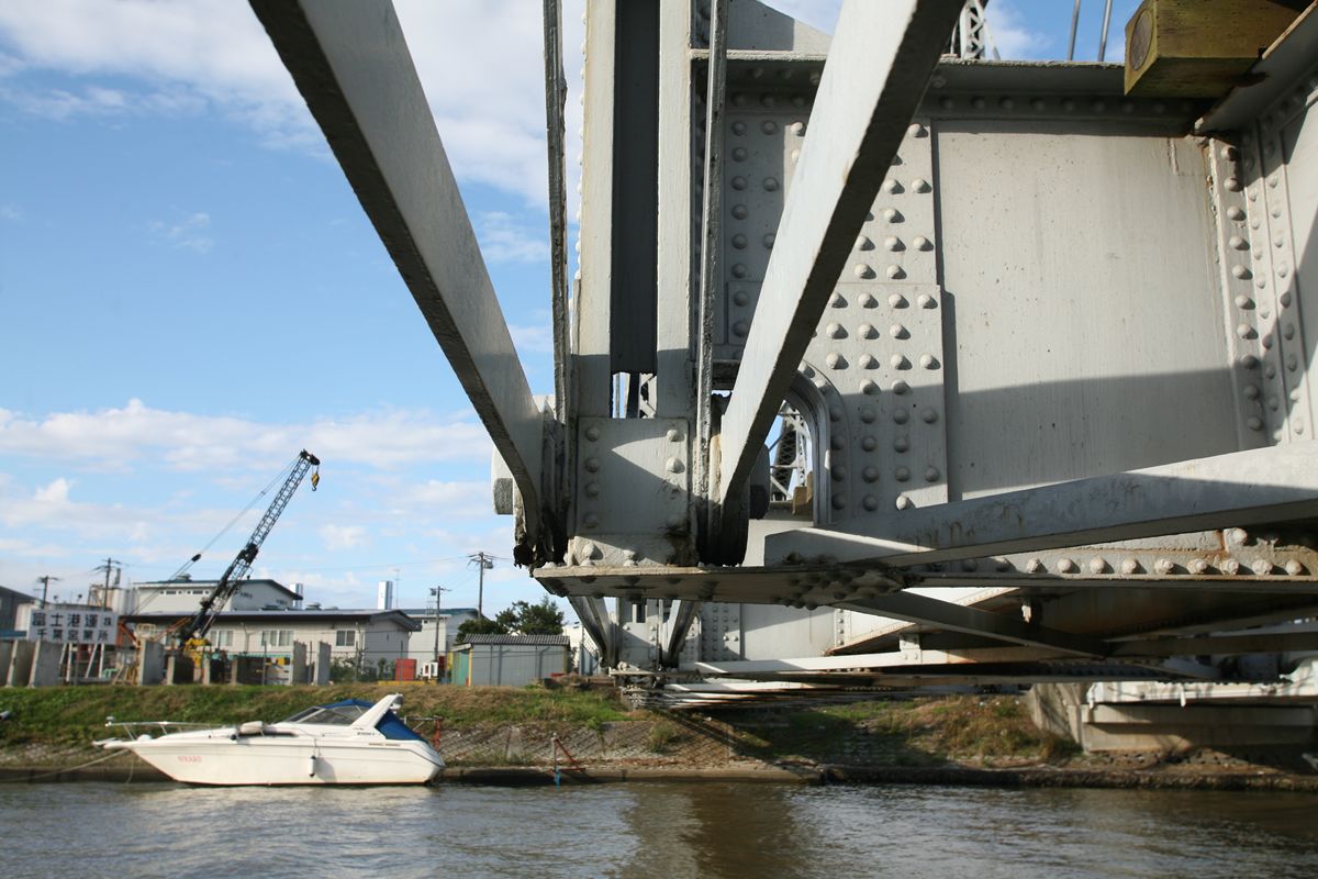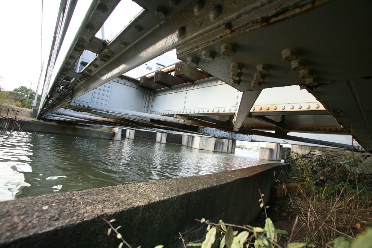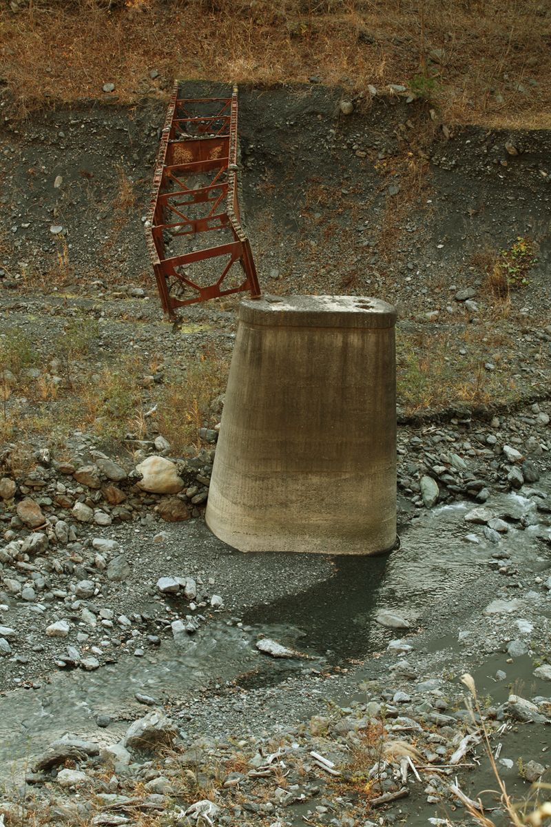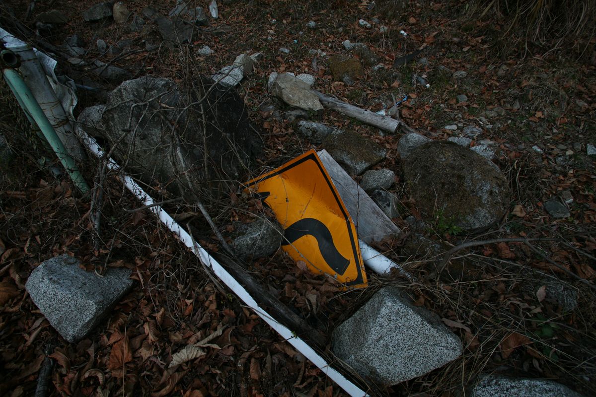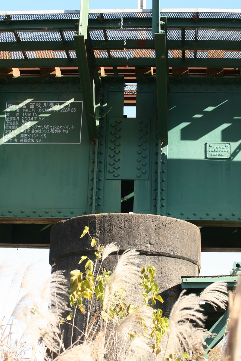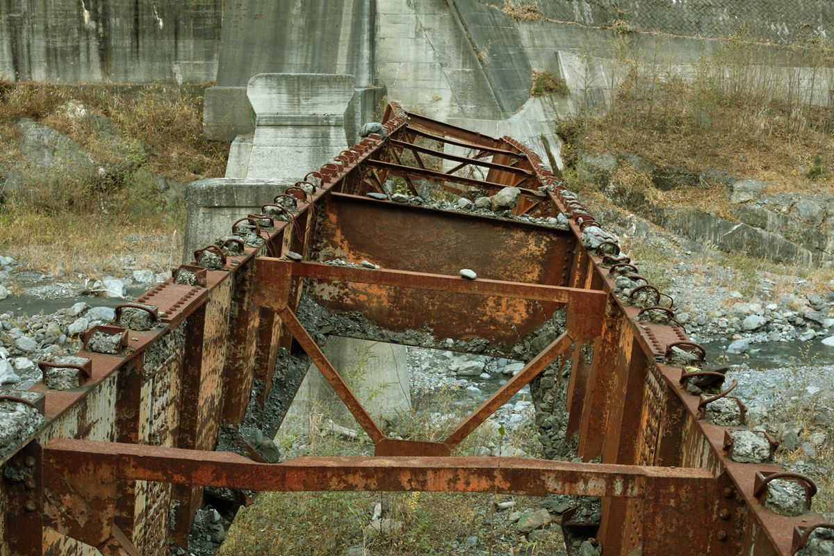 見ての通り、旧道は瓦礫で埋め立てられている。撮影していると、カメラをもった男性が近づいてきて「紅葉、終わってますね」。僕たちは「そうですね」などと返事をしたが、紅葉を撮っているわけではないので、つれない返事に聞こえたかもしれない。新橋は1992年6月竣工。