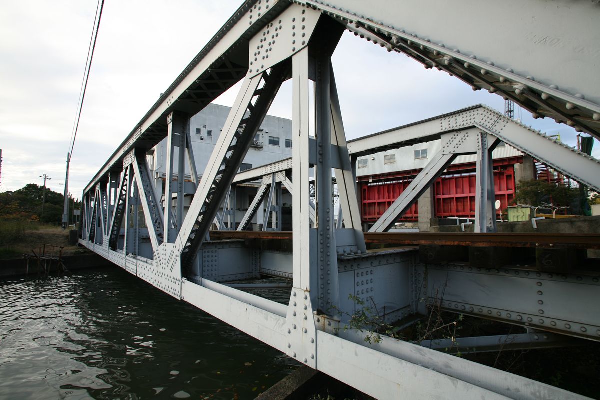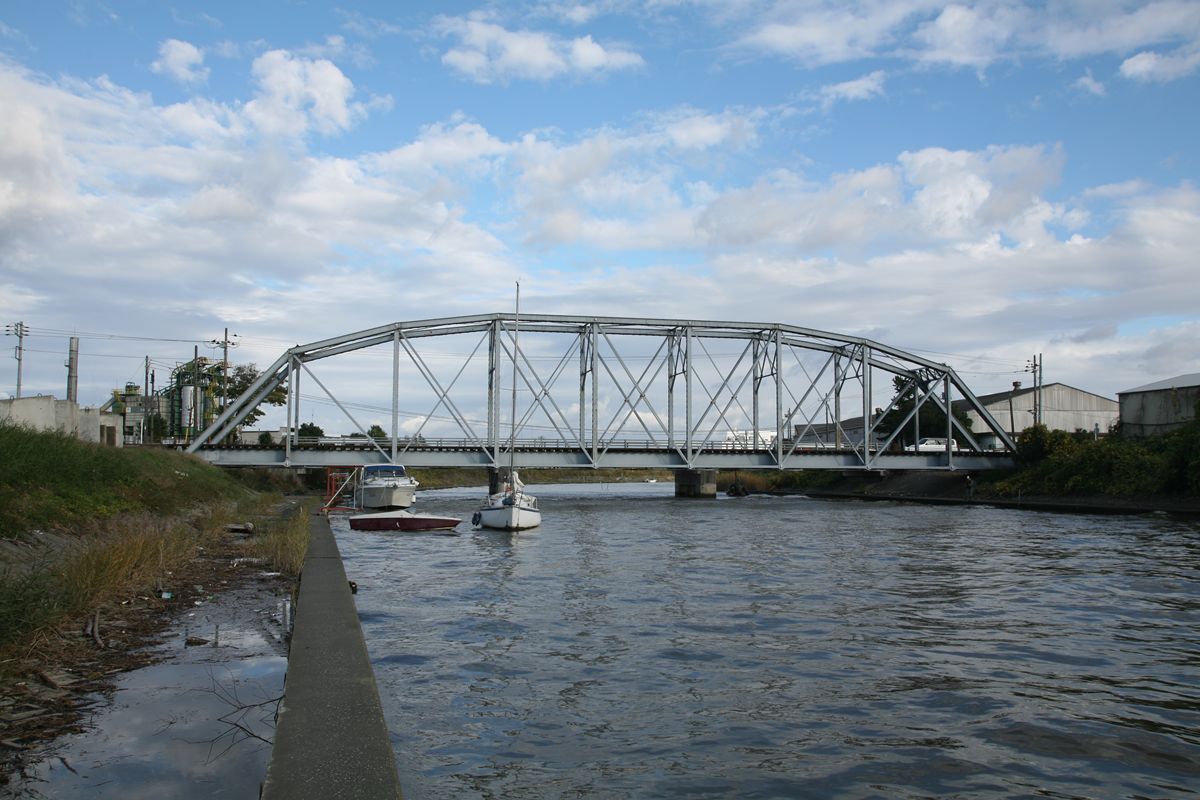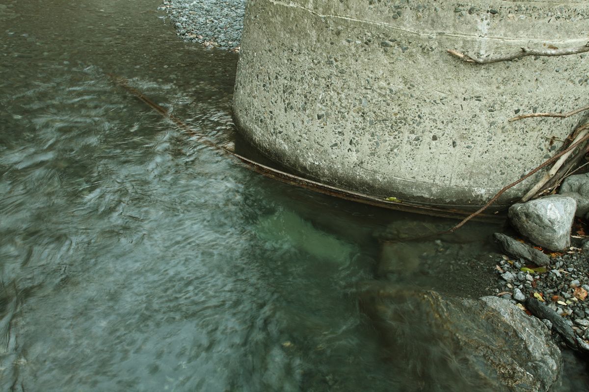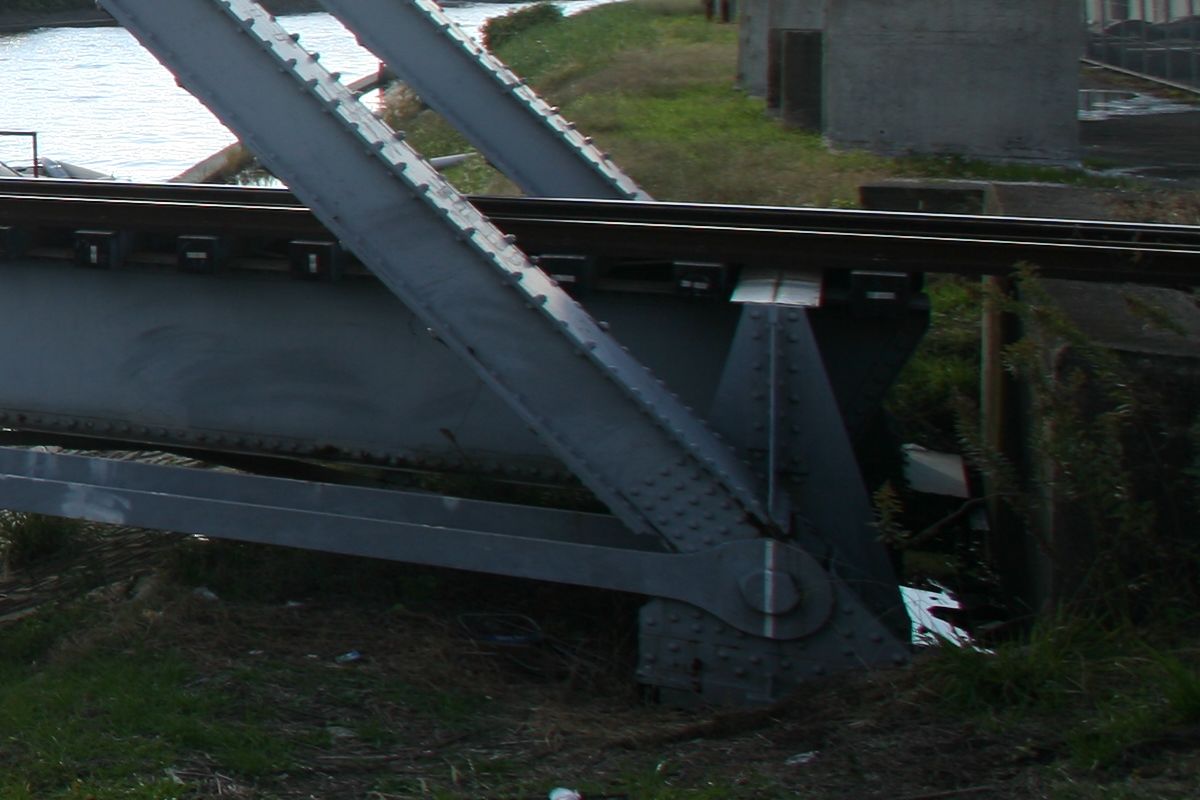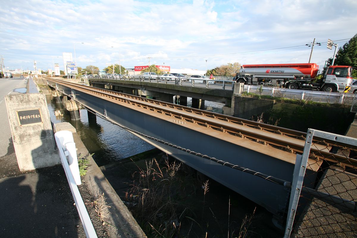 見ての通り、旧道は瓦礫で埋め立てられている。撮影していると、カメラをもった男性が近づいてきて「紅葉、終わってますね」。僕たちは「そうですね」などと返事をしたが、紅葉を撮っているわけではないので、つれない返事に聞こえたかもしれない。新橋は1992年6月竣工。