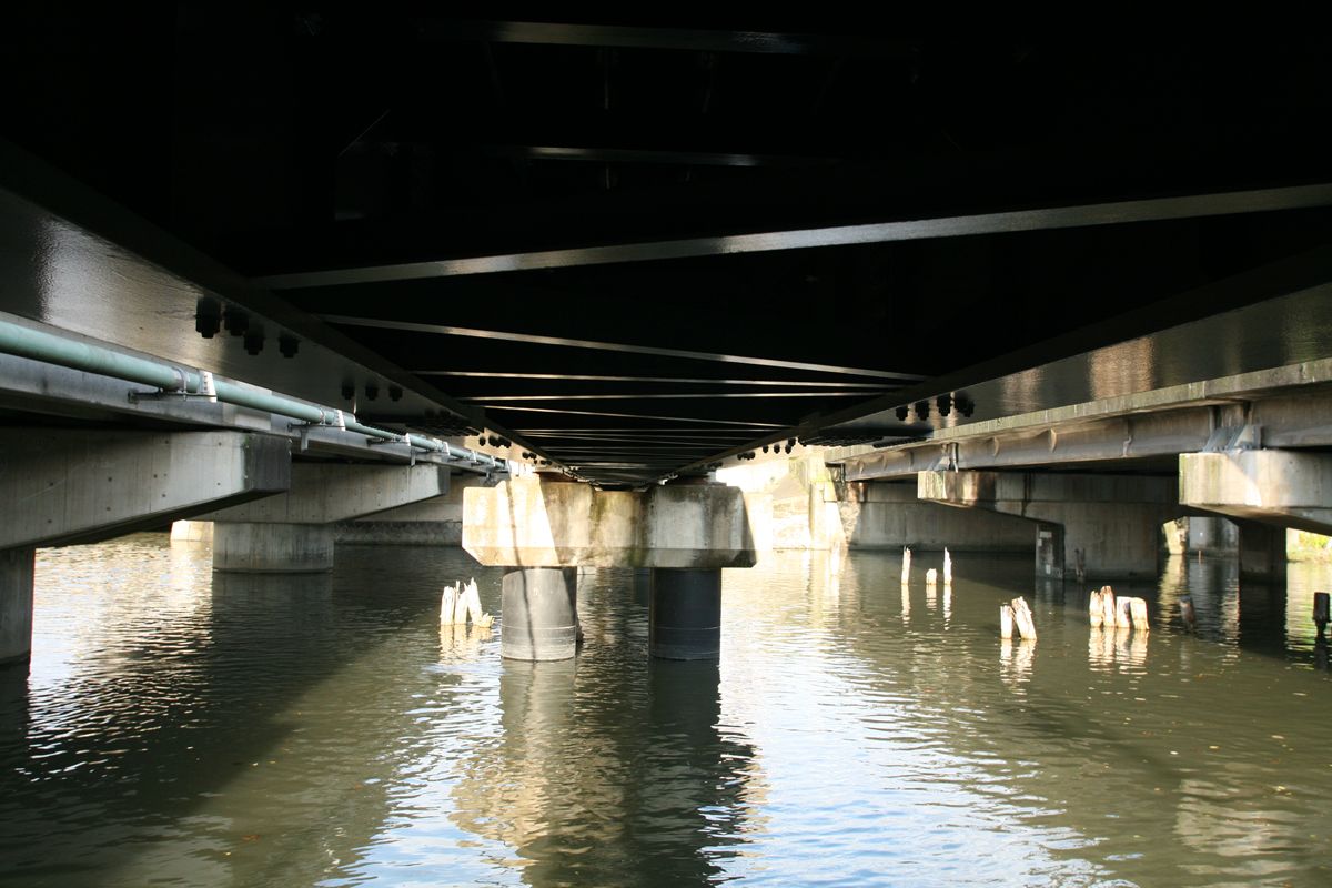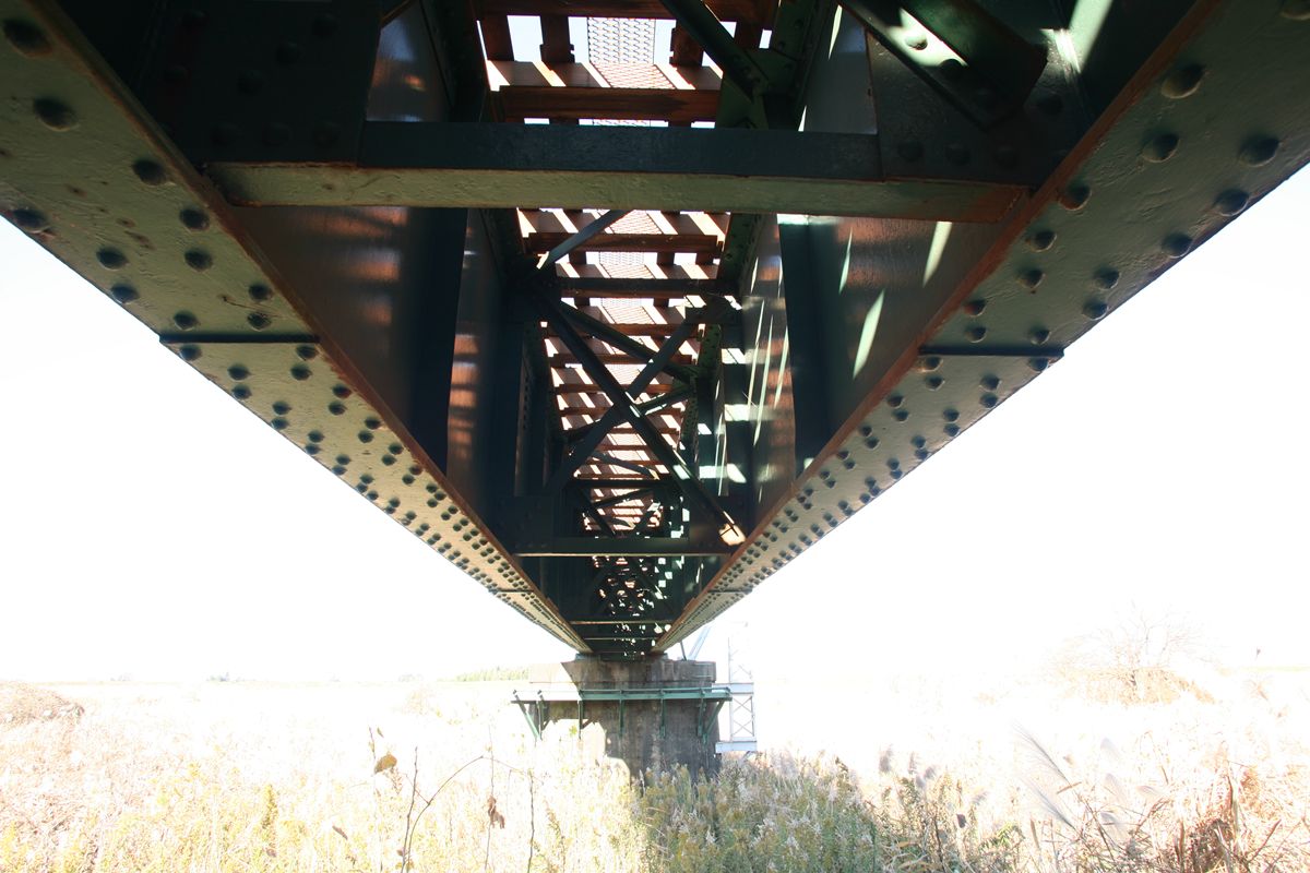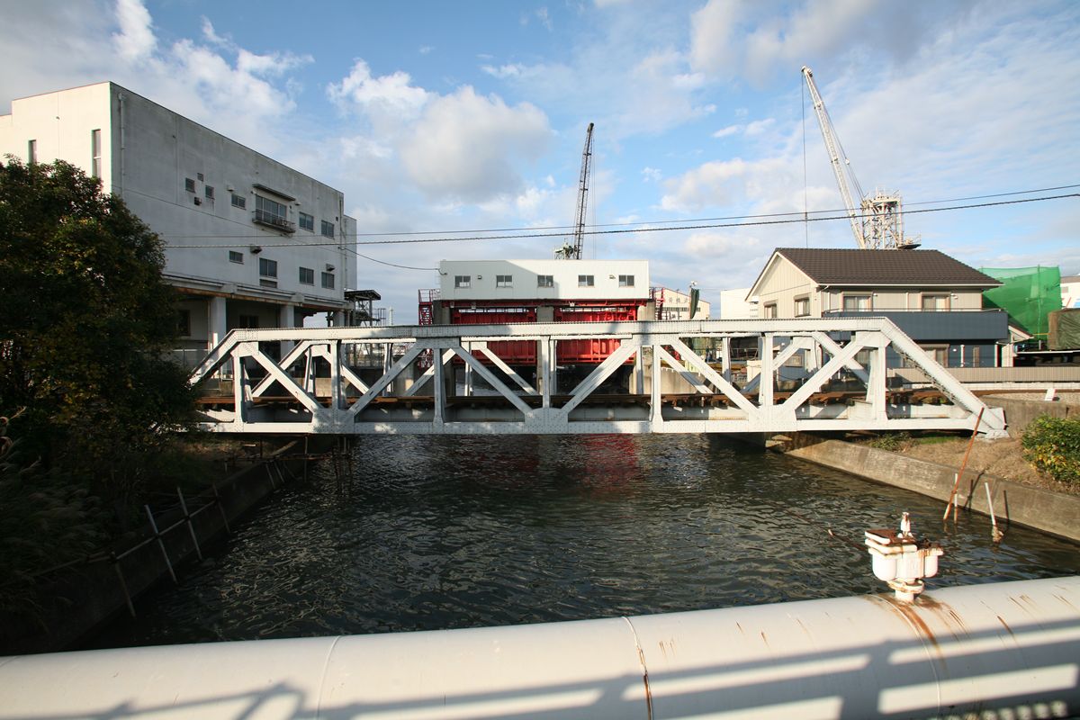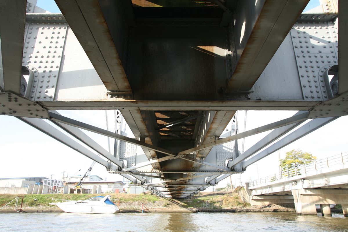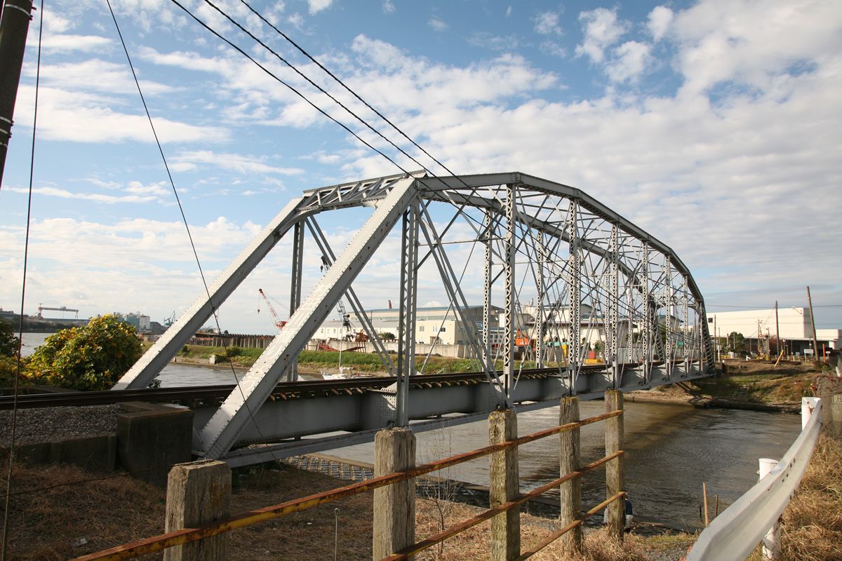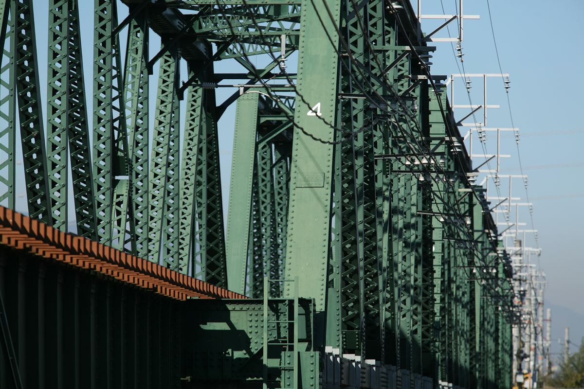 見ての通り、旧道は瓦礫で埋め立てられている。撮影していると、カメラをもった男性が近づいてきて「紅葉、終わってますね」。僕たちは「そうですね」などと返事をしたが、紅葉を撮っているわけではないので、つれない返事に聞こえたかもしれない。新橋は1992年6月竣工。