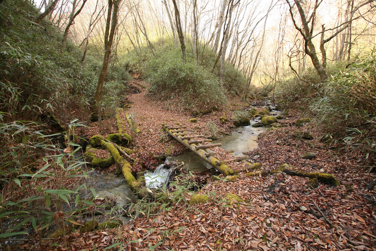 おそらく車道として使われていた道を歩く。しかし、3~4ヶ所、このような木橋がある。ここが車道だったころ、どんな橋がかかっていたのだろうか? 当然、木橋だとは思うのだが。