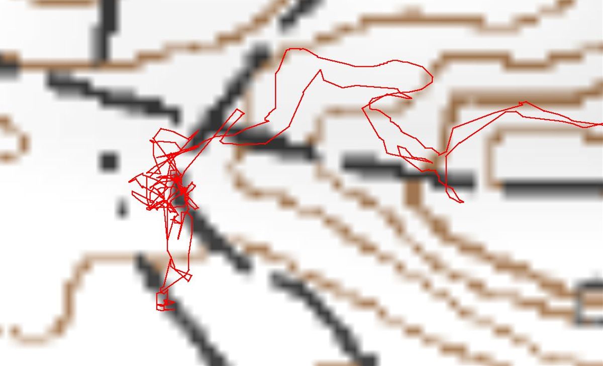 最初は車道の幅があったが、沢を遡る形で歩いて行くと徐々に狭くなる。それでも沢側には低い石垣があったりして、車道を感じさせる。しかし、やがてGPSは地形図の破線とは別の地点を指し出す。地形図が誤っているのか、現在の通行路が地形図と異なるだけなのか。