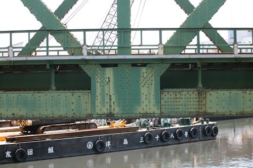 斜橋(川を斜めに横切る)であるために、クイーンポストトラスに見えないかもしれない。鉄道の発展に伴い、早くも1875年には鉄製のワーレントラスに架け替えが決定され、1877年には2代目の橋が架けられた。わずか5年の命だった。2代目の錬鉄製の橋梁は明治村に保存されている(