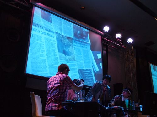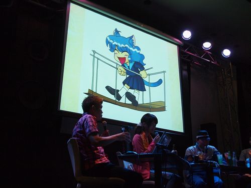 21時50分ころから二次会。本当は千葉のトークショーでやるはずだったレポをここで紹介した。