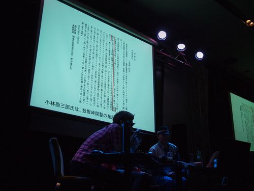 ライブならではの後述レポは、ここにすべてを書くようなものではないので割愛させていただく。いずれORJなどで発表があろうが、畳みかけるようなトークに、会場の皆さんがぐいぐいと引き込まれていくのがわかる。固唾をのんで次の展開を見守る。決定的瞬間の前に、一度立ち止まってさらに説明し、じらすなど、これは山行がやORJでもあることだが、本当にうまい。そして最後、小林勘三郎翁のくだり、私は涙が出そうになった。「道への思い」がいかに強烈なものであったか……。同じように思った人は他にもおられるのではないだろうか。
