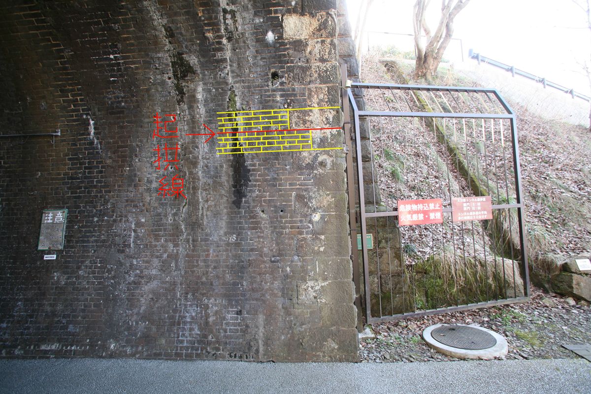 起拱線という見方を知っていると、トンネルを見る目が変わると私は思う。側壁が長手積みであることはほとんどないので、簡単に見分けがつく。