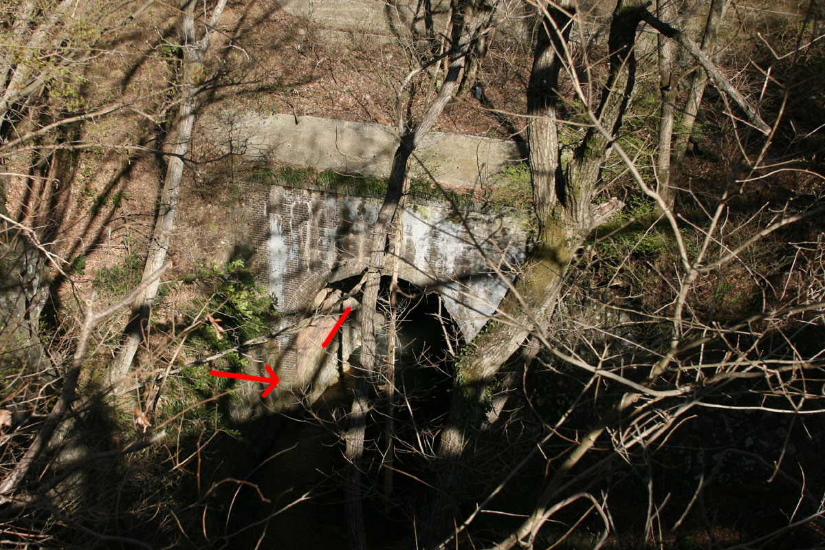 上の写真では、新しい下り線のトンネルのコンクリートが、翼壁を浸食している。それでもピラスター(坑口の左右にある柱。坑門が倒壊しないように押さえつけている)を破壊しないようになっているのは景観的な配慮なのか、それとも構造的な配慮なのか。