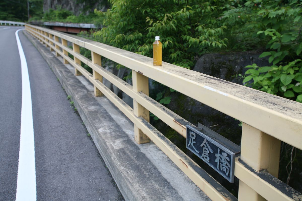 もし、単純に落として転がっているだけなら無事。もし、クルマに踏まれたりはじかれたりしたらアウト。ダメもとで、他のクルマに気をつけながら、追い越し車線に目を凝らした。すると、12.5kmポスト付近の、追い越し車線よりさらに外側(ガードレール付近)に、パックリ口を開けたデイパックと、カメラ、スーパーの袋などがあった。詳細は省くが、目に見えるものだけ回収した。回収中に、べとべとしているな、と思った。これは、ウイダー風ゼリーが破裂したためだ。回収していると、先に菅笠を届けてくださったのと同じnexcoのパトロールカーが停止した。