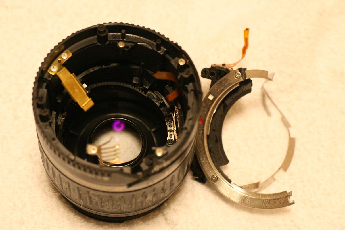 そしてレンズ。付近にはレンズの破片が転がっていた。右側はカメラ側のマウント。