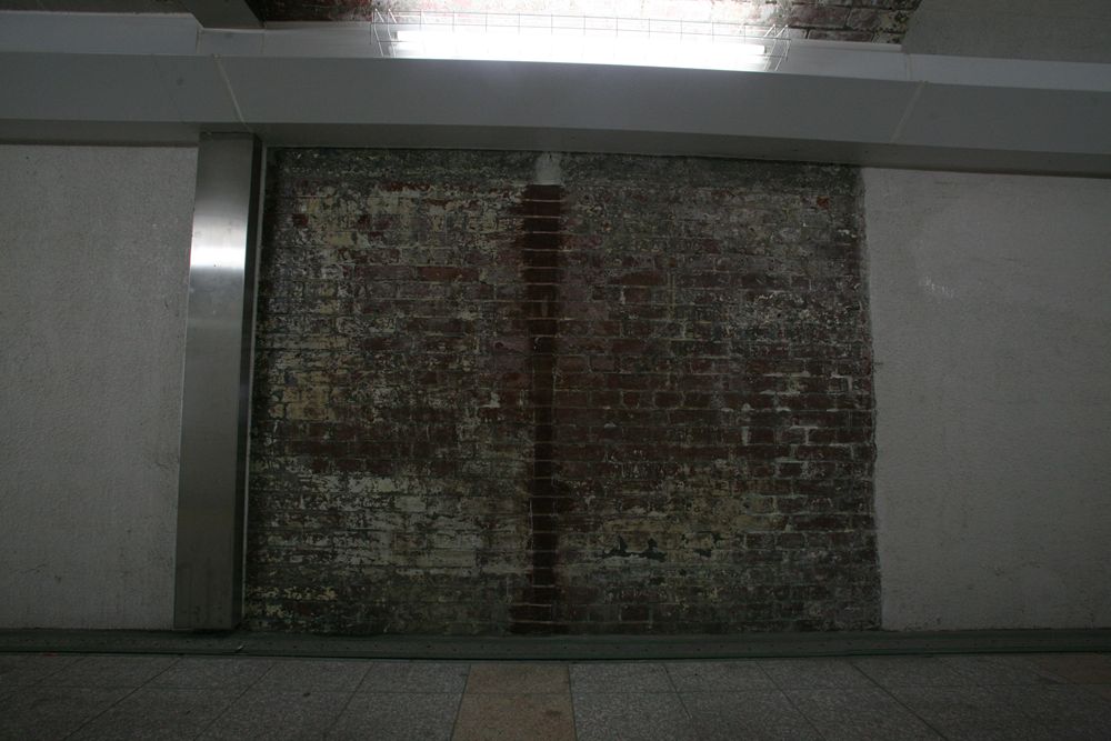 この第二武庫川橋梁は、2代目である。上の写真の橋台を見て不自然を感じ取った方もおられるだろう。いまの橋台はどう見ても後付けのコンクリート製。その奥というか地上側には切石積みの橋台がある。上の写真を拡大してみよう。
