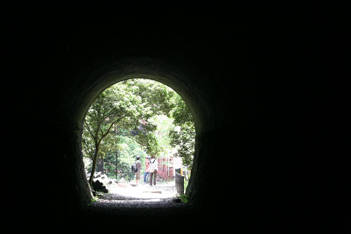 1986年、福知山線の生瀬-道場間が複線電化の新線に切り替えられた。近年、その廃線跡が遊歩道として整備され、それはそれは賑わいをみせている。私が尋ねたのは「廃道ナイトin大阪」の翌日、5月の日曜だったが、おそらく300人くらいにはすれ違っていると思う。
