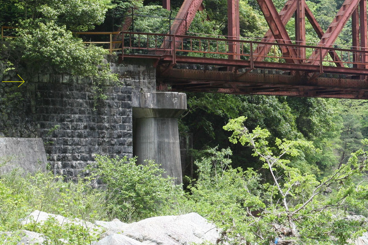 こちらのサイトにある。あいにく橋台は見えないが、1953年まで使用されたこの初代のトラス桁が、石積み橋台を使用していたのだろう。